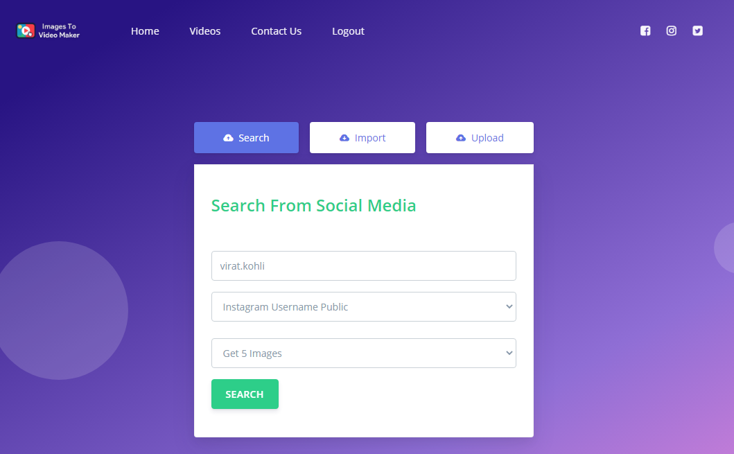 Images 2 Video Maker PHP Script is tiny bot that can import images from social media platforms or import from set of URL’s or Desktop Files. And Combine them into a beautiful looking video with given time frame and background audio. Is enough to get more attention to your social media profiles as VIDEO is THE FUTURE NOW.