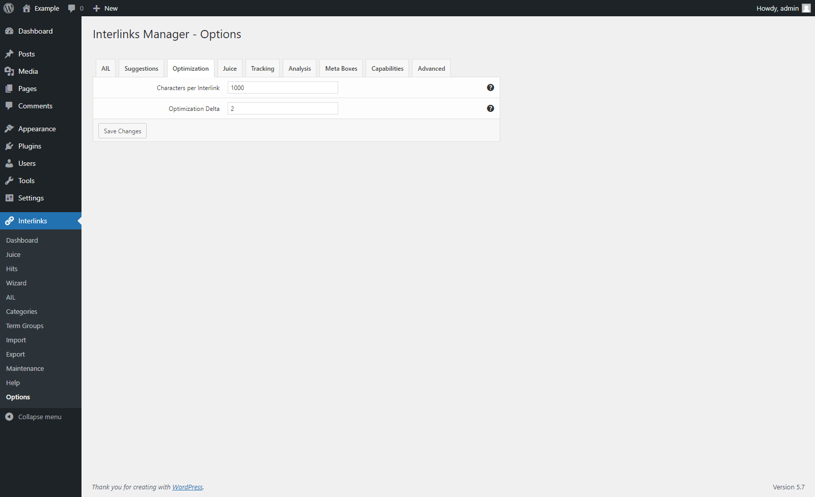 In the Options menu you can select the capabilities required to get access on specific plugin features, so you can for example enable the Interlinks Suggestion meta box for your contributors and editors and leave the other features disabled for them, give to a special user role the ability to perform analysis on your posts and so on.
