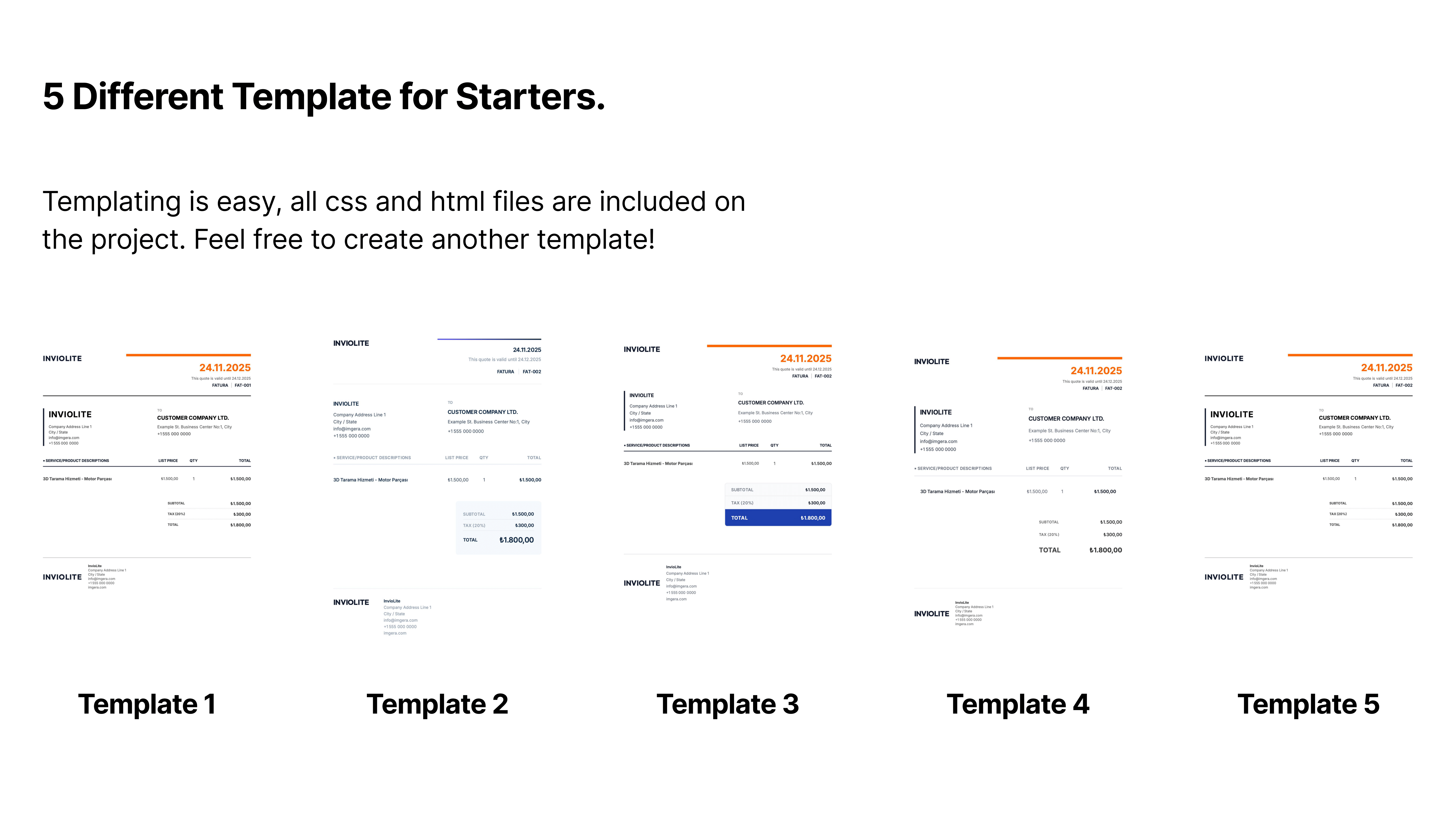 - 5 Professional Templates – Classic Professional, Payment Providers Inspired, Commercial, Design, and Physical