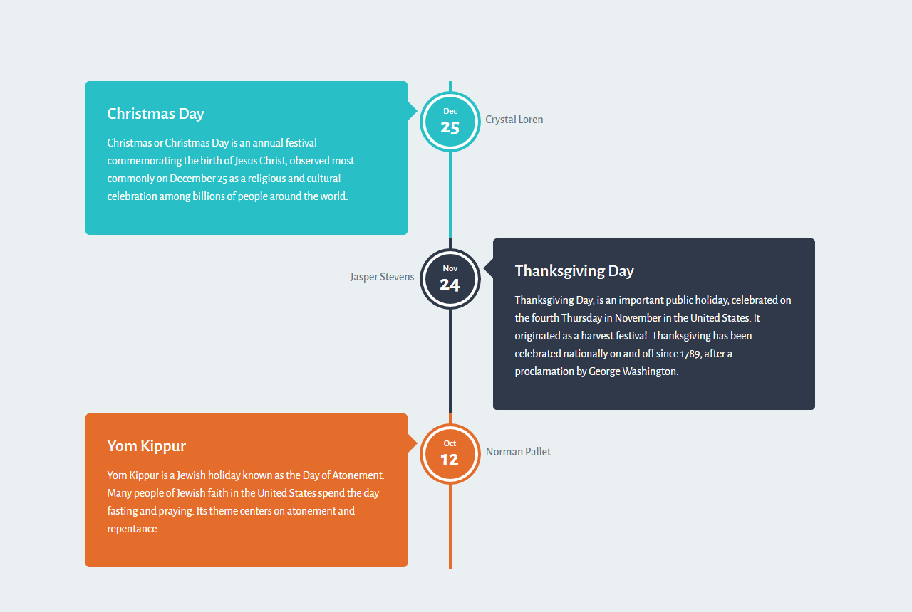 Jazz Timeline is a simple intuitive HTML5 CSS3 vertical content timeline that can be used on any website or application.