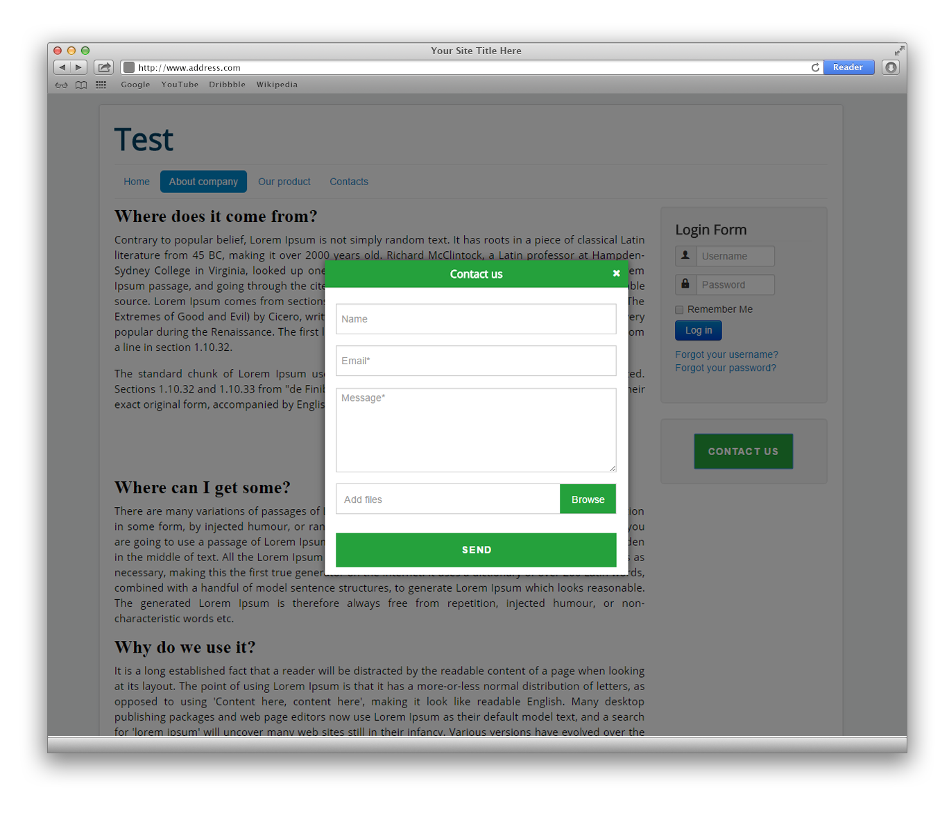 - Popup forms Create default or popup forms. Call the modal box on click of a button, text, menu item, any element you want.