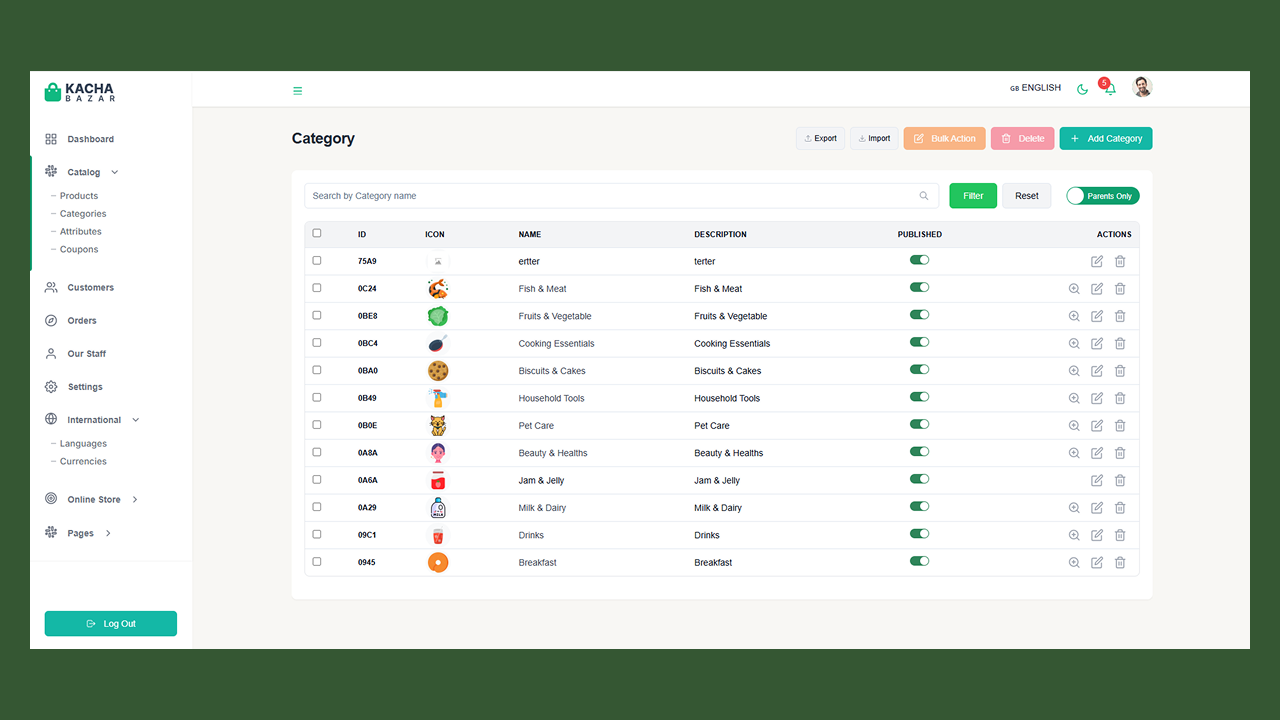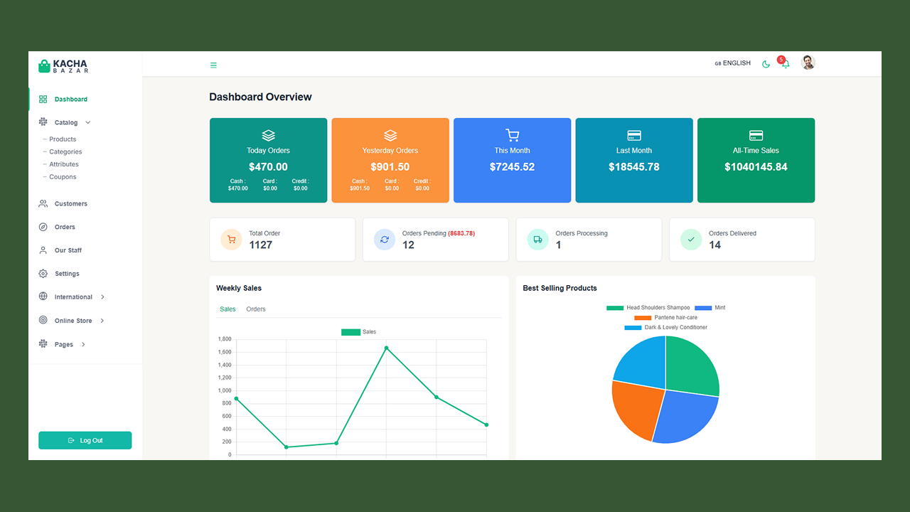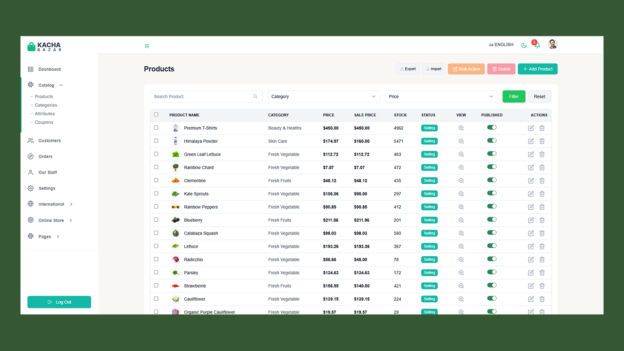 KachaBazar React Next Js eCommerce Solution. This is an eCommerce template built with React, NextJs and Tailwindcss with Rest API integration. This template backend is ready and is built with node, express, and mongoose schema validation and uses MongoDB for the database. It’s a complete MERN(MongoDB, Express, React, and Node) project but you can use it according to your need or any kind of eCommerce store.