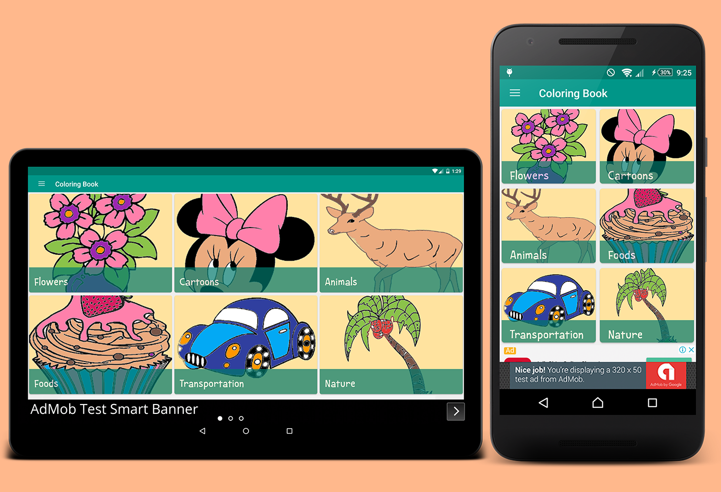 - Remove the progress dialog while coloring. - Replace AdMob Native Express ads with Smart Banner ads, since Google deprecated the Native Express ads. - Support Firebase Push Notifications for active and inactive users.