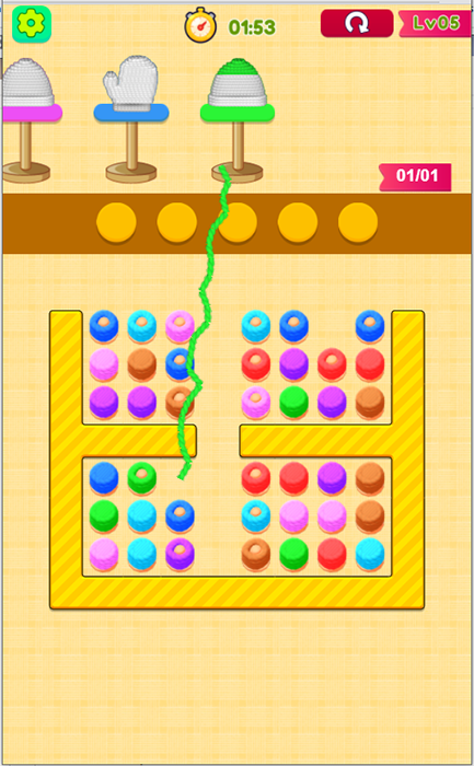 Simple gameplay: Tap and drag to place the yarn ball into place