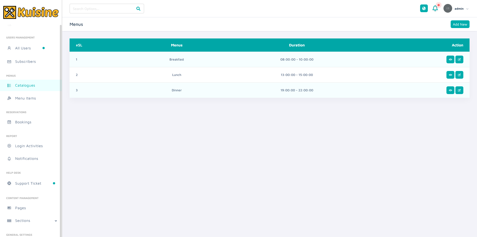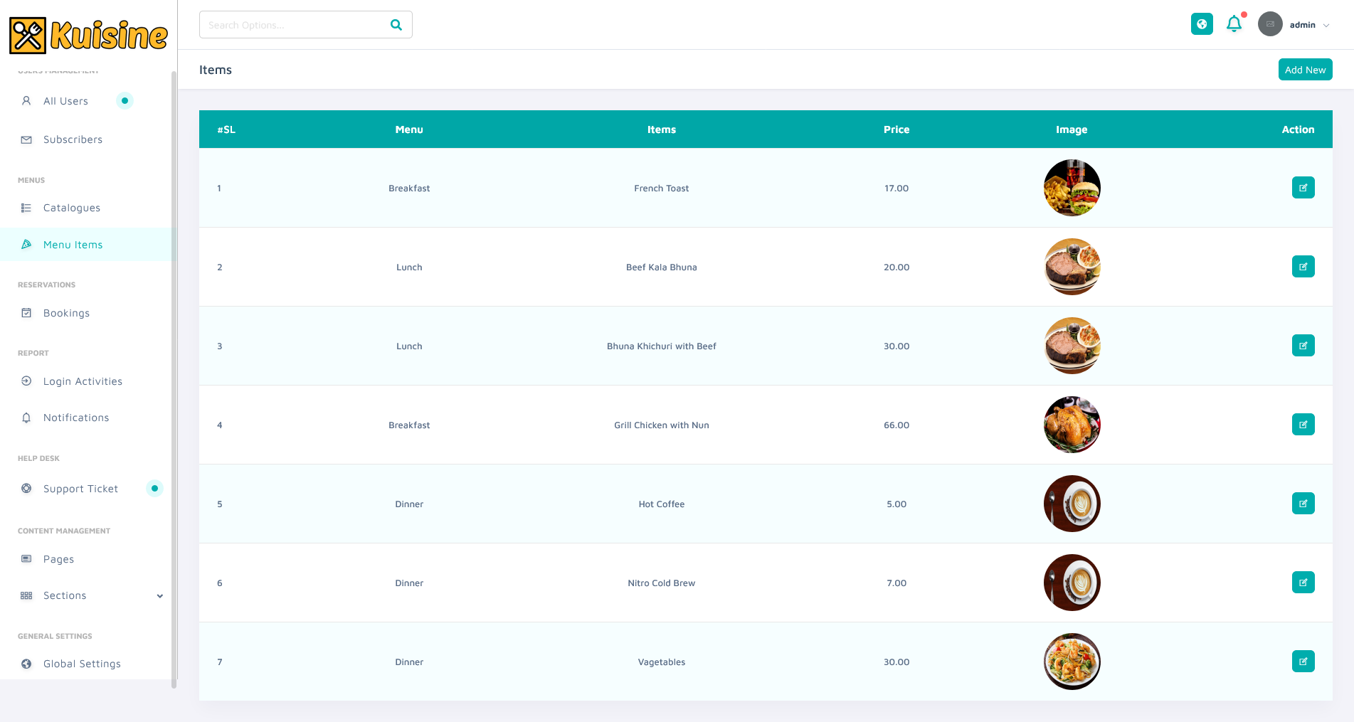 – Menu Items Management