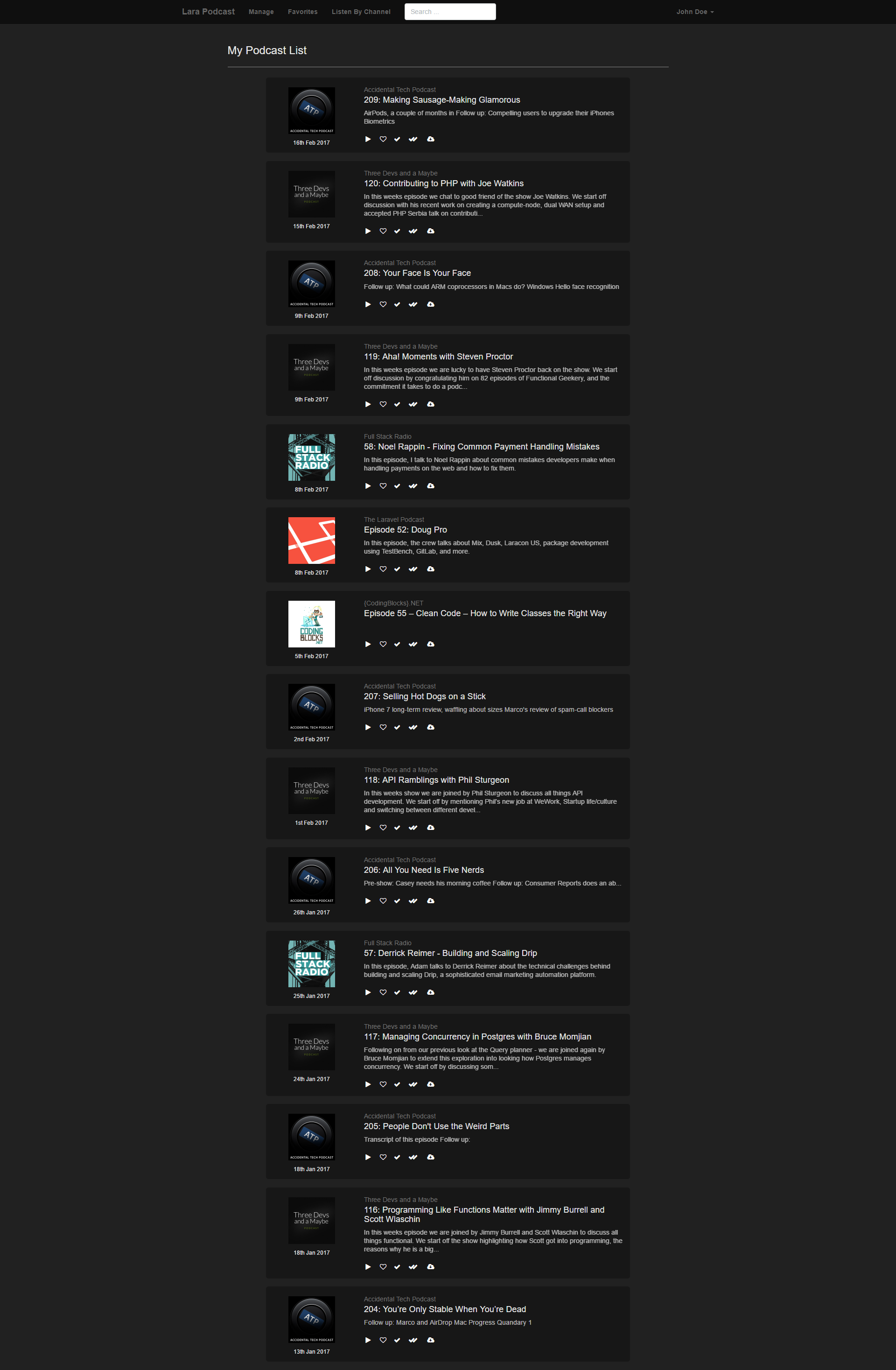 LaraPodcast is a simple and nice app that fetch all those podcasts for you from different podcast sites. With LaraPodcast, you can fetch podcasts from various sites, you can download direct mp3 , you can make any podcast favorite and many more.