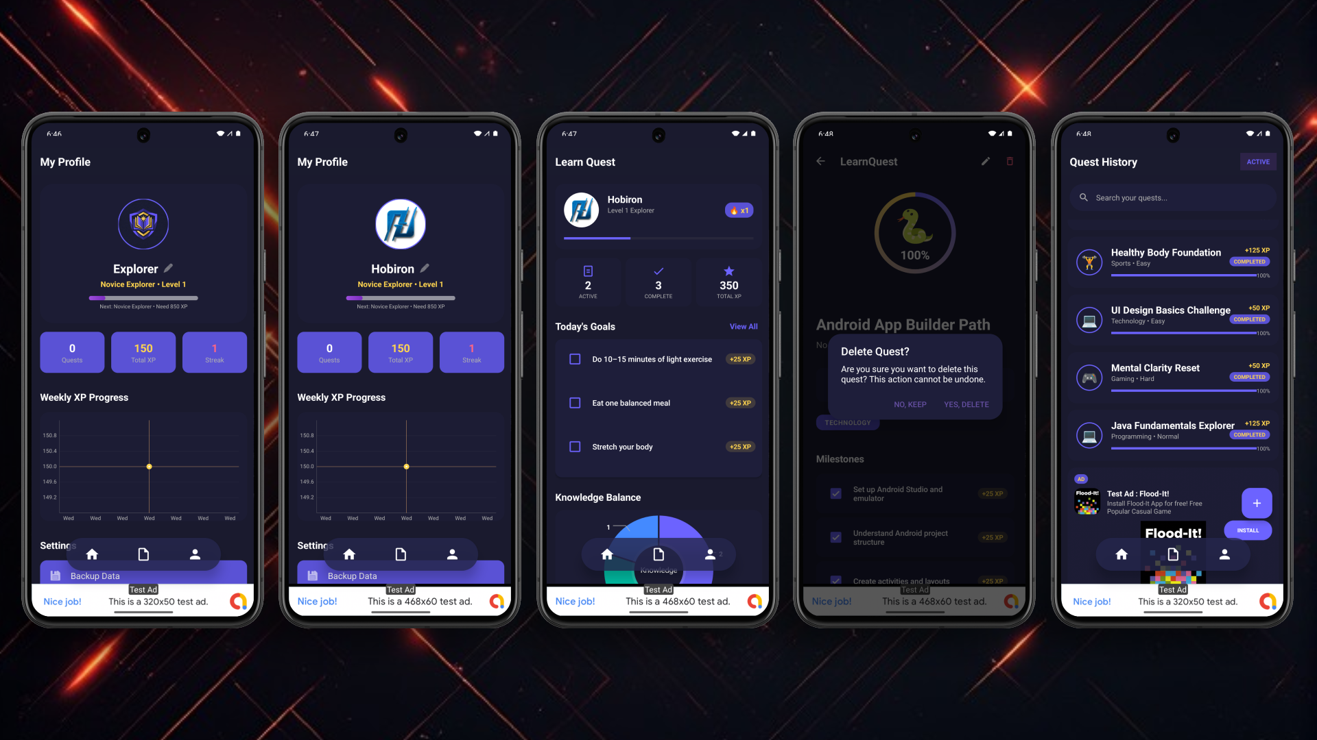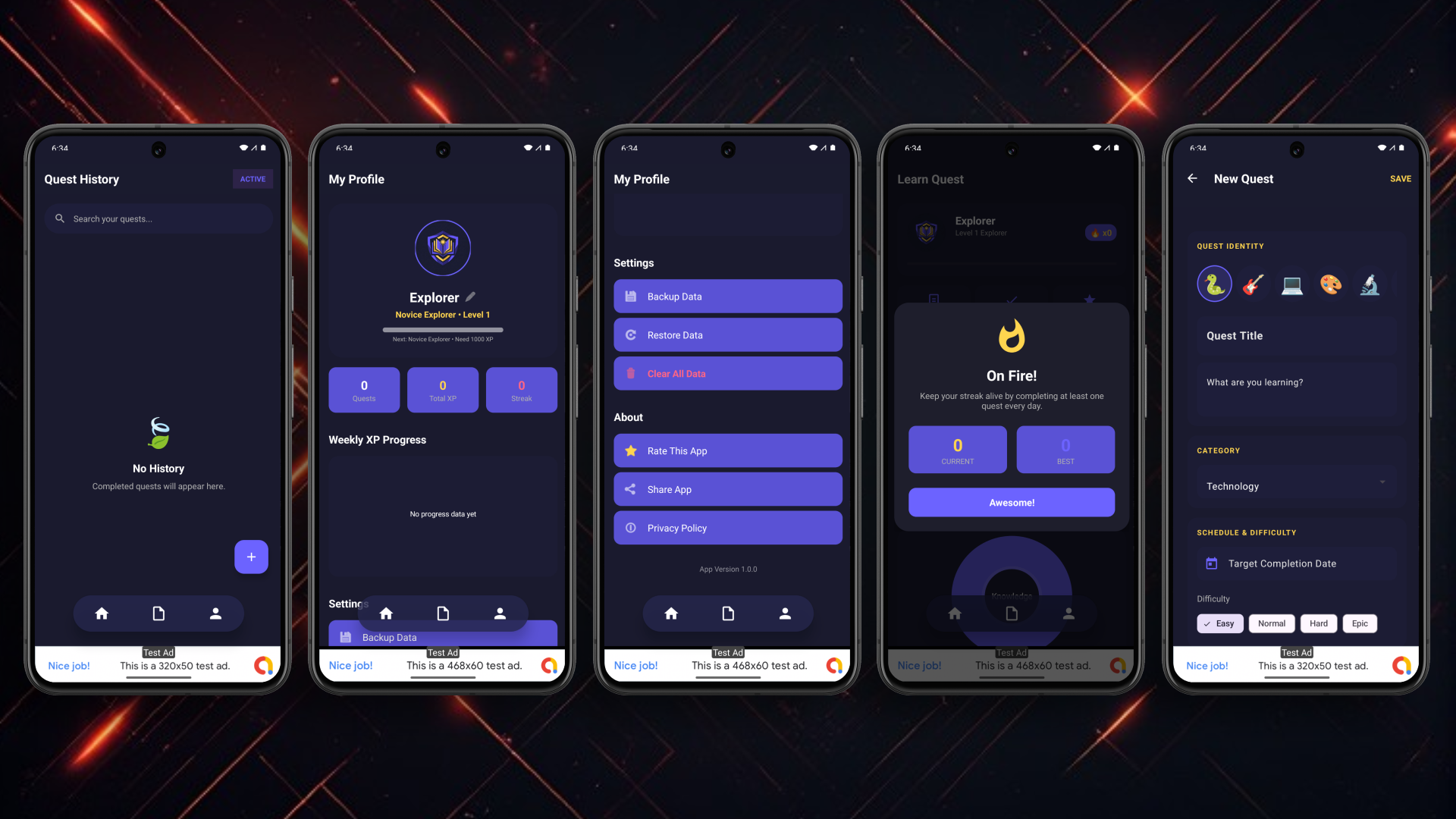 Learn Quest is a premium, high-quality Android application template that transforms mundane task management into an exciting RPG adventure. Users don’t just complete habits; they gain XP, level up, maintain streaks, and unlock achievements.