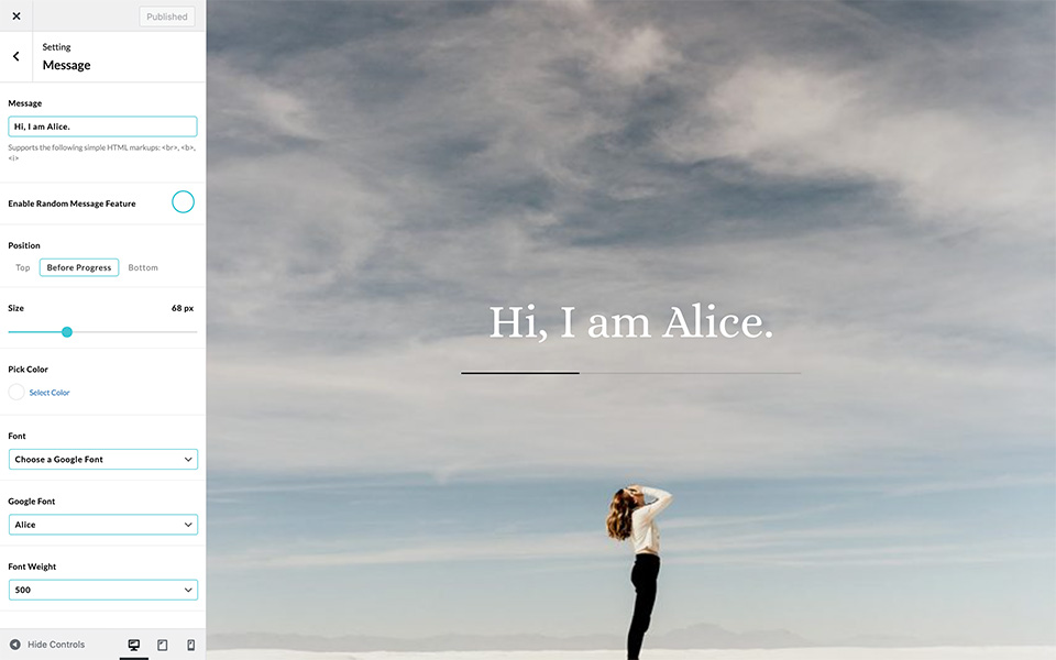New feature – New loader animation, new ending animation, and display progress bar with counting number. And, a Random Message is displayed each time the page is loading .