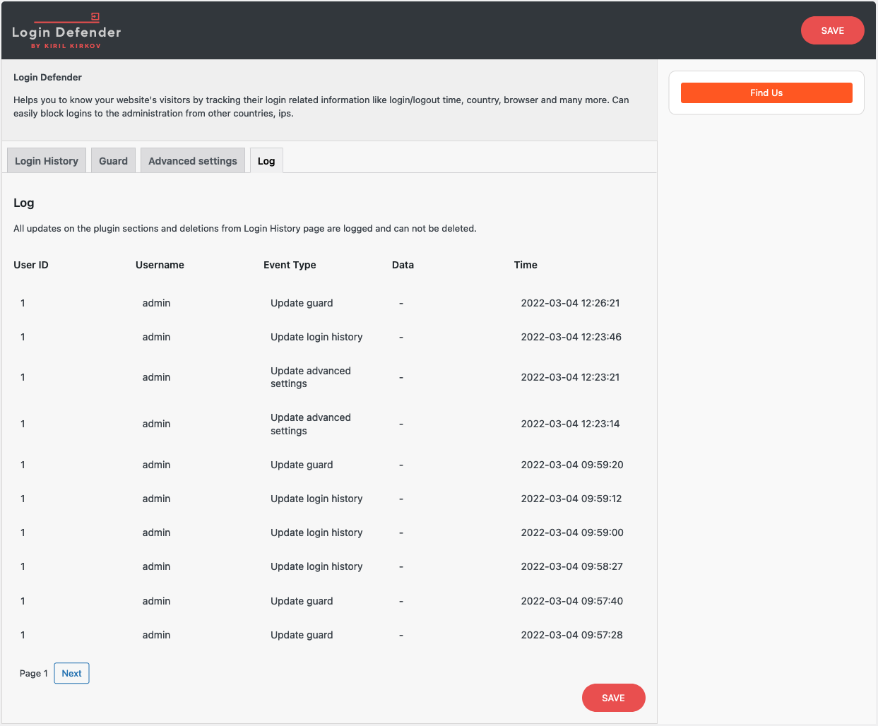 Helps you to know your website visitors by tracking their login related information like login/logout time, country, browser and many more