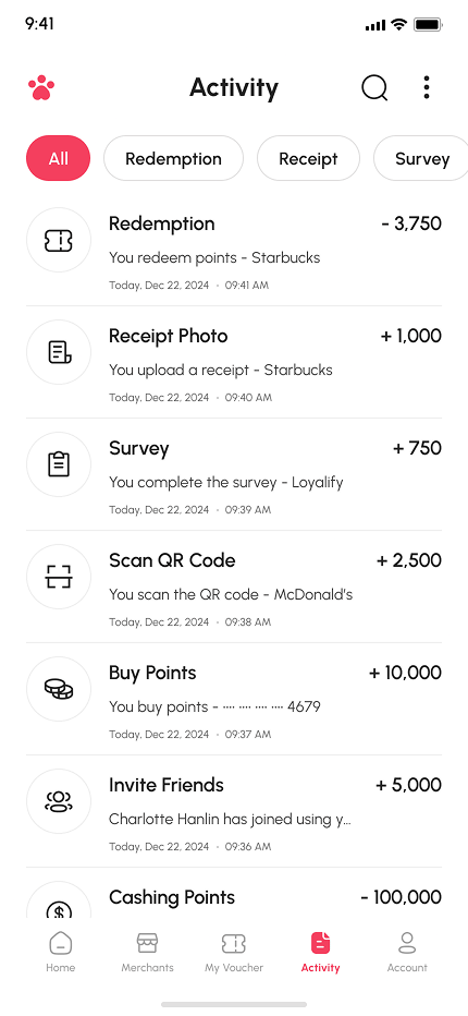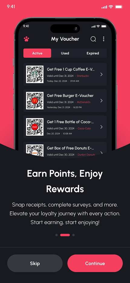 - Collect points & earn rewards by uploading receipt photos, completing surveys, scanning QR codes, buying points, inviting friends, & cashing points
