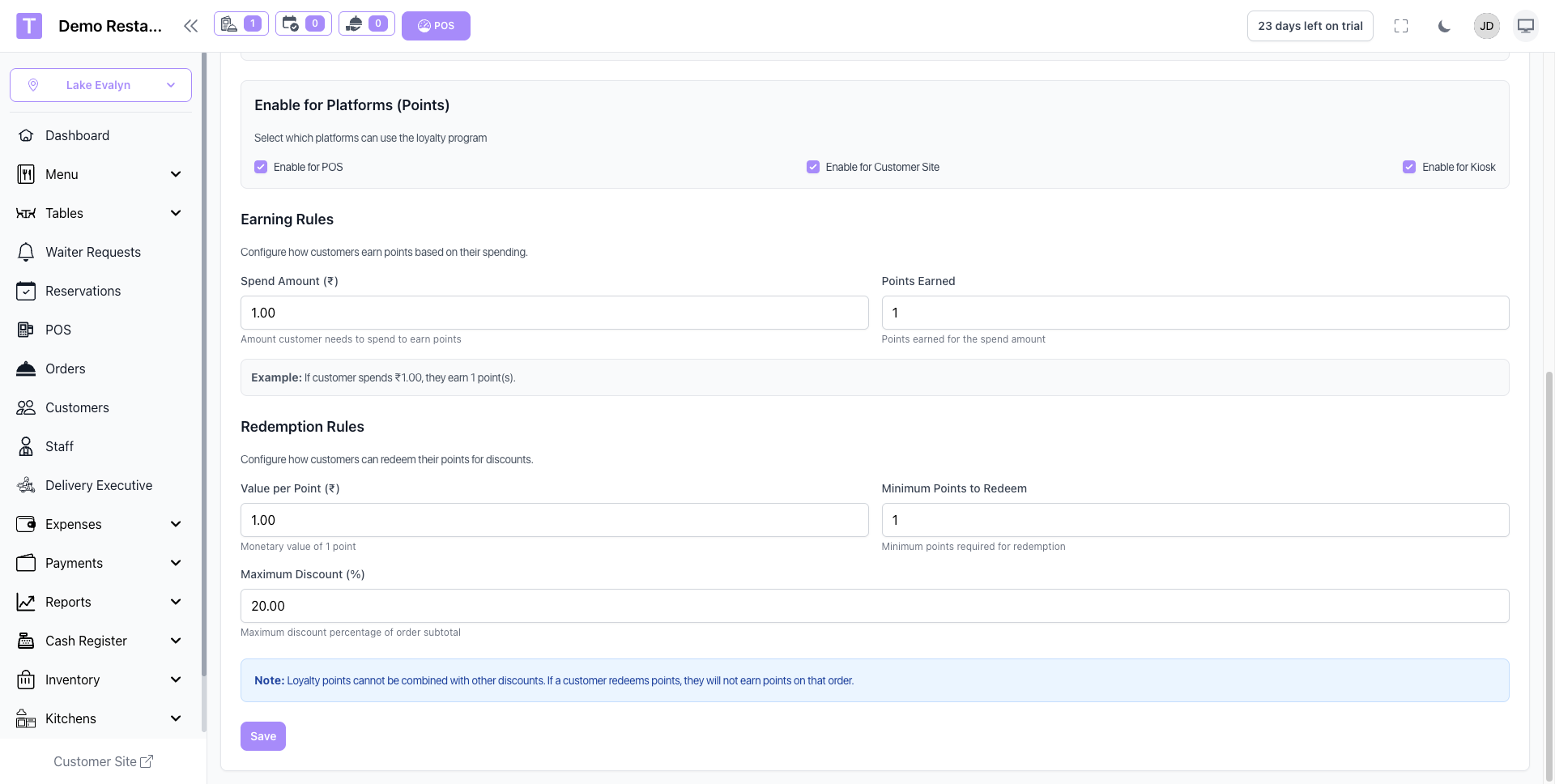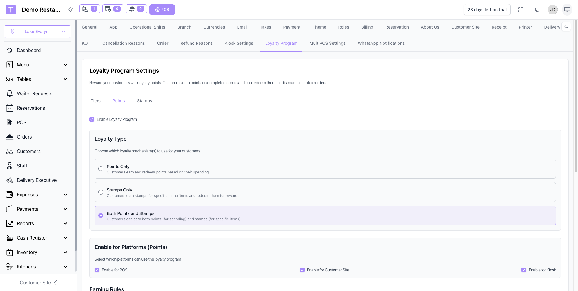 - Customizable loyalty rules, earning rates, and redemption policies