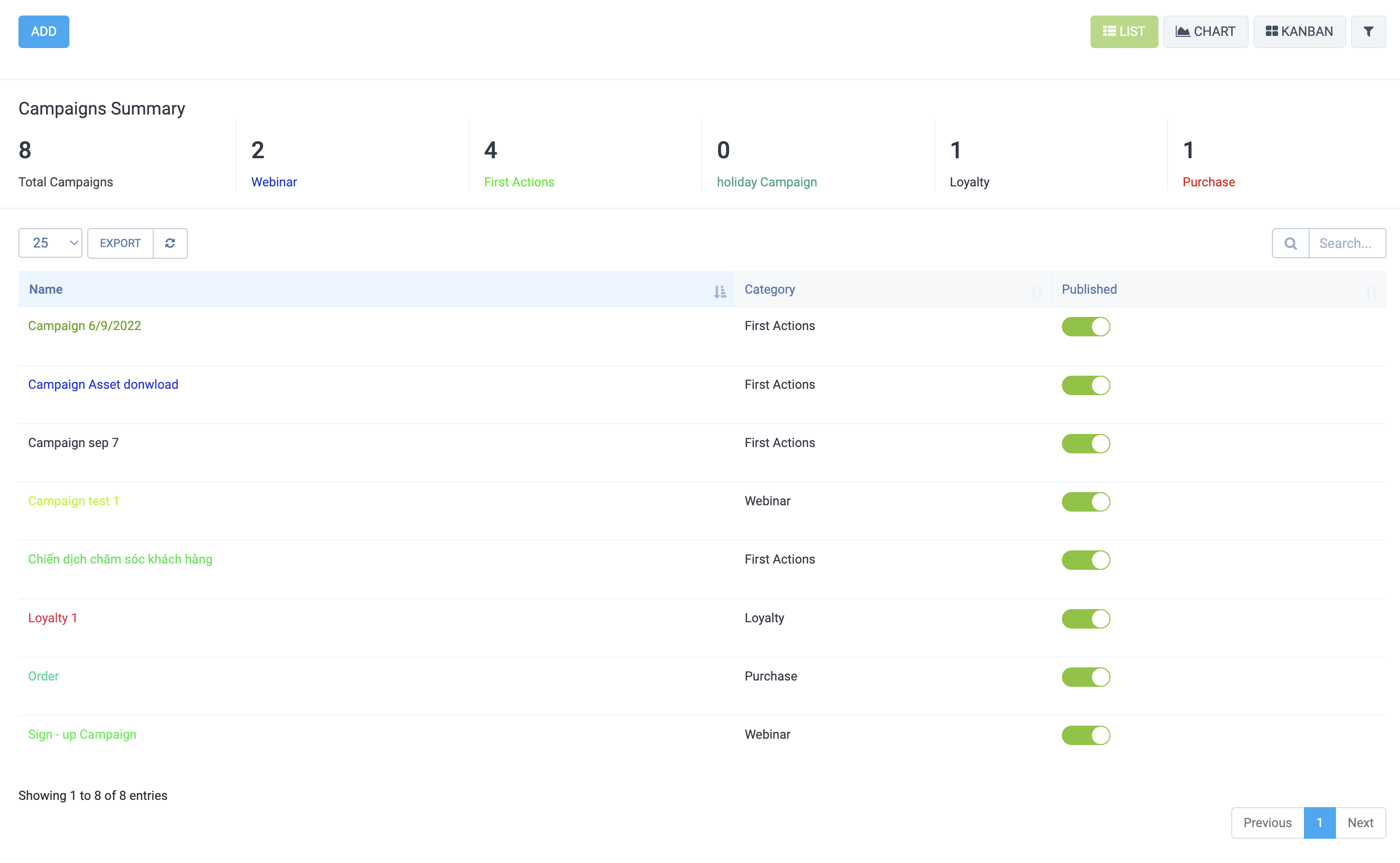 Added a tab displaying participated campaigns and points achieved in the lead detail view
