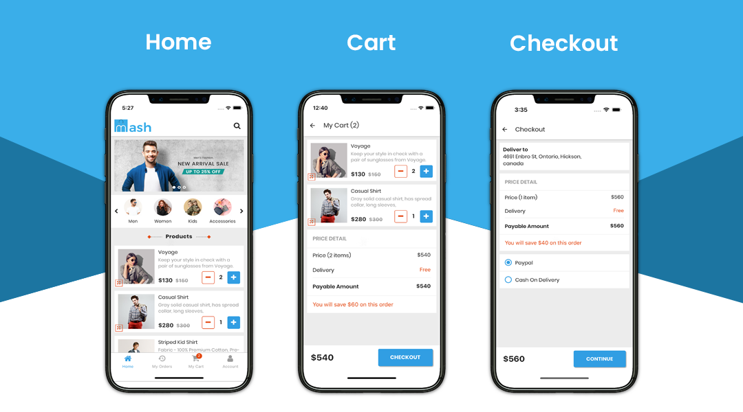 Mash E-commerce React Native App is a complete solution for your store, this is fully functional and ready to use app with MeteorJS a NodeJS framework, Graphql backend. It has a powerful admin panel for managing products, users, categories, orders and much more. Mash comes with functionality to charge payment with Paypal.