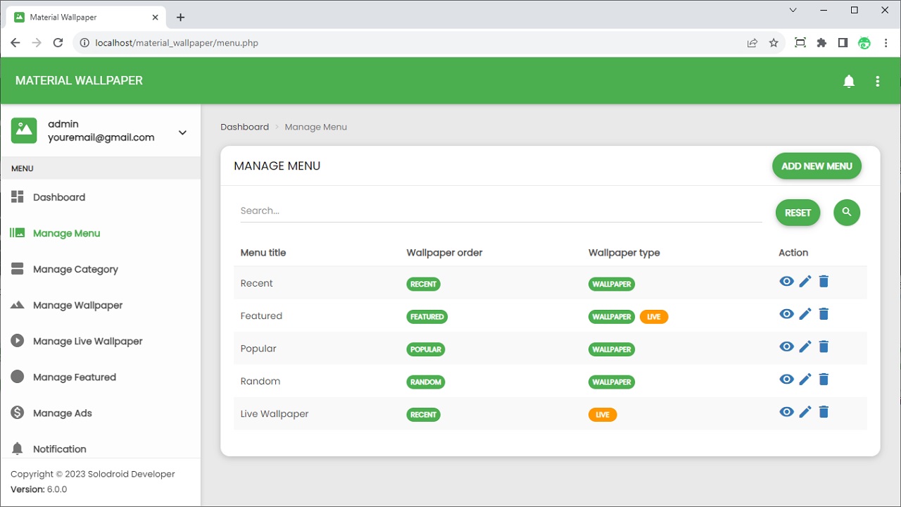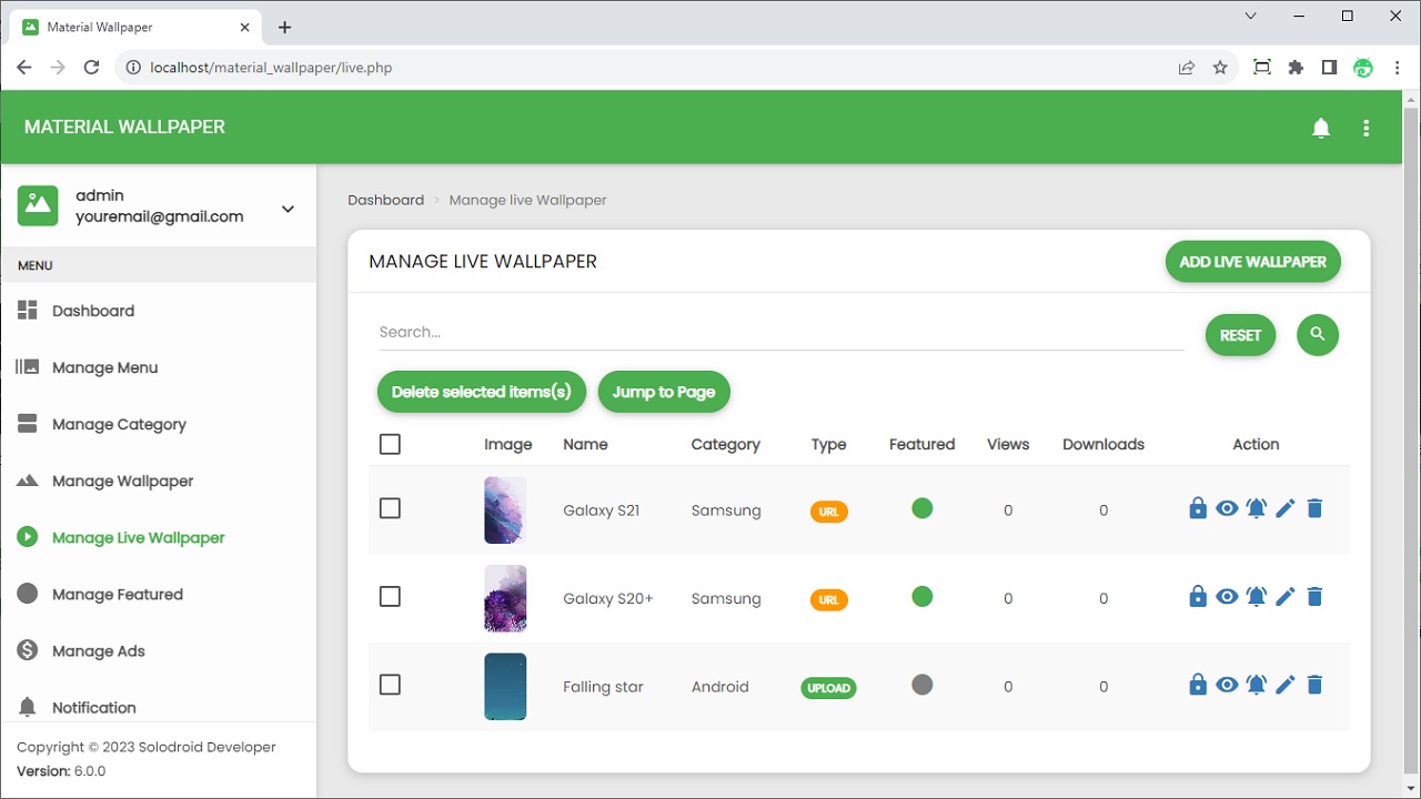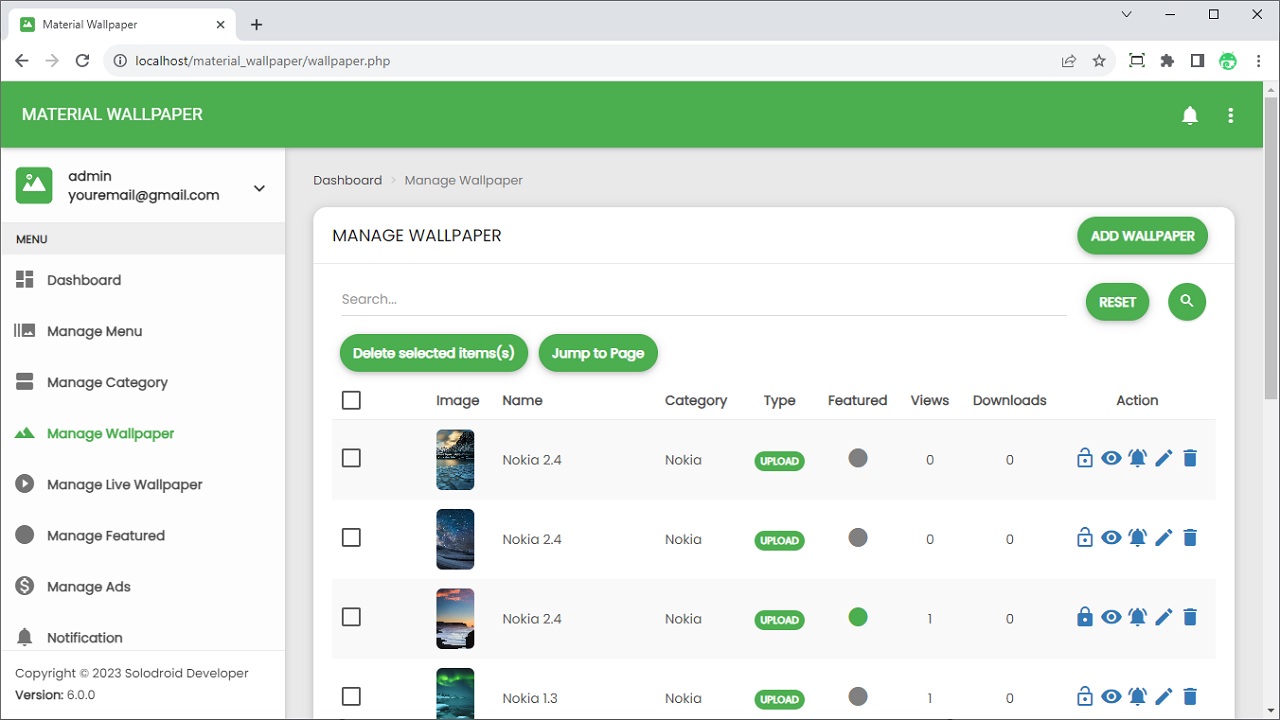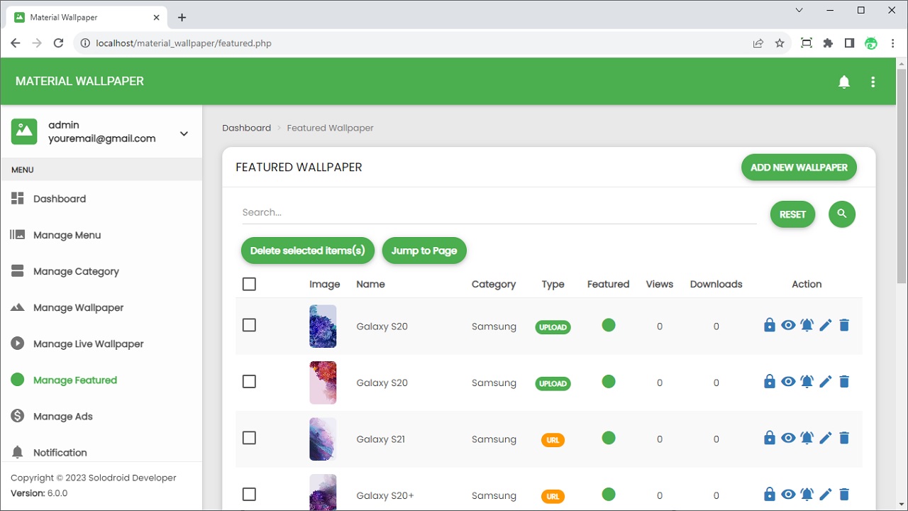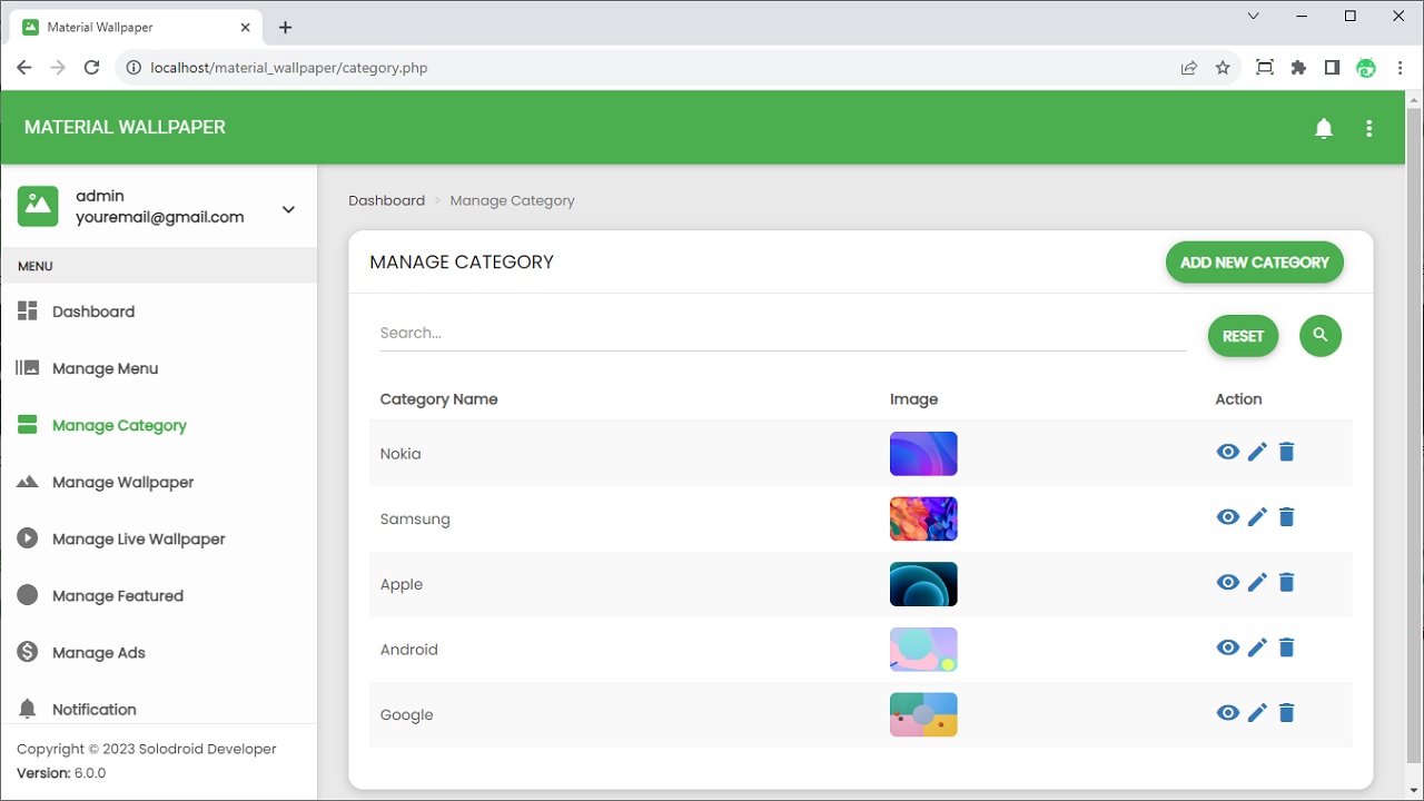 Material Wallpaper is a mobile image gallery and wallpaper system which run under Android platform that used for your own gallery and wallpaper application. With powerful and Responsive Admin Panel can manage unlimited category and image gallery, change user settings, etc. This application created by Android for client side and then PHP MySQL for Admin side. Run under Android platform which is the most popular operating system in the world. Using this application you can save your money and time in creating application for your own image gallery and wallpaper application.
