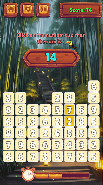 I would like to introduce an interesting game called Math Forest. This game is a great way to enhance your mathematical and logical skills while enjoying the fun of gaming. In this game, you will be presented with a square grid containing small squares. Each small square contains a number from 1 to 9. Your goal is to click on the squares to create a sequence of numbers that adds up to the given question. The game is not only an entertaining game but also an excellent way to sharpen your logical thinking and computational abilities.