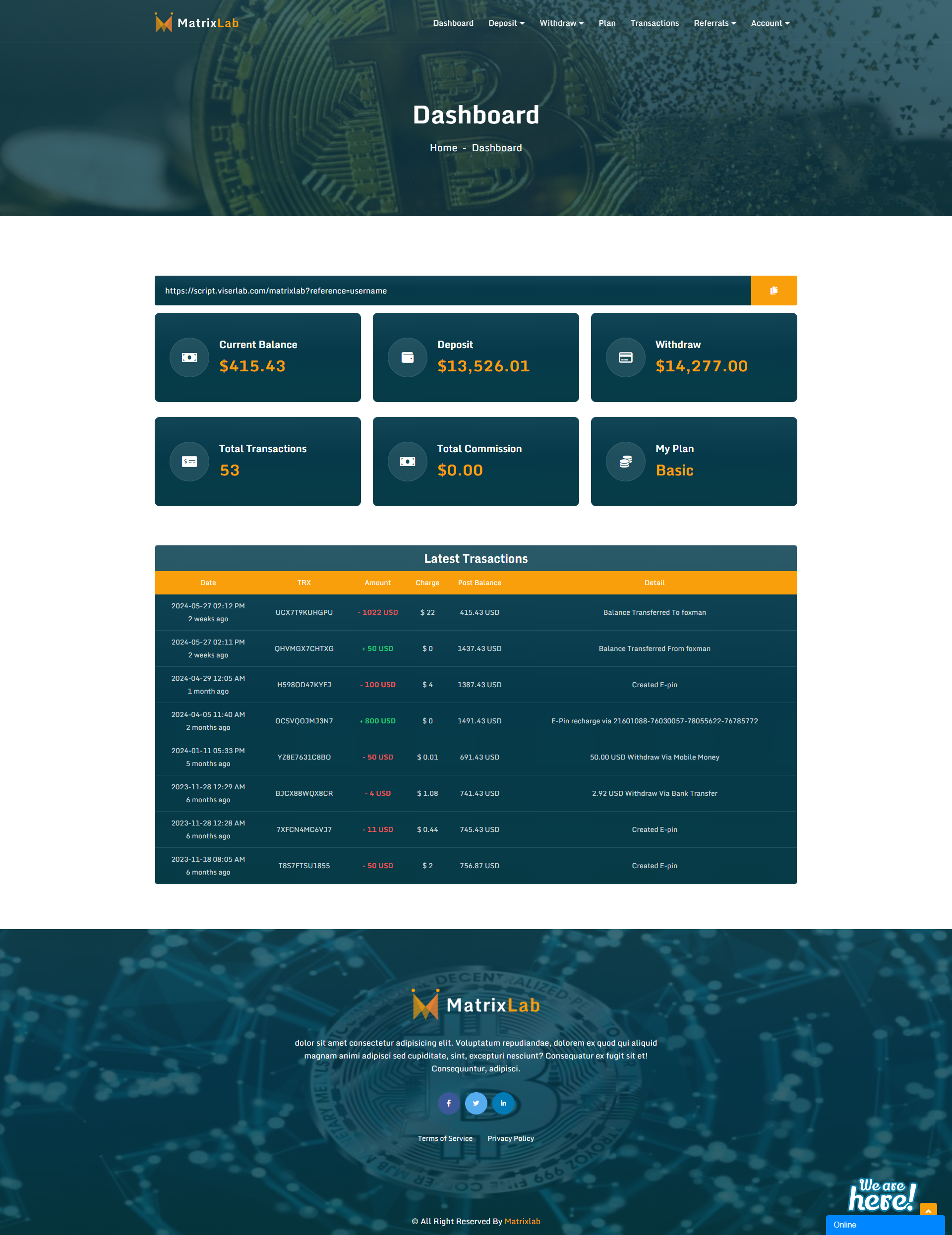 MatrixLab, a professional Multilevel Matrix Solution that comes with PHP laravel. It’s developed for those people who want to start their Multilevel Matrix business website. globally, 60 million people work as network marketers & 36.6 million customers have bought products/services from the network marketing model. It’s a huge industry and today here we releasing the best Matrix Script ever. a complete solution for multilevel matrix business. here, marketers and users can join via a referral system, can manage their downline, be able to choose plans, earn referral commissions, withdraw their earning, and more.