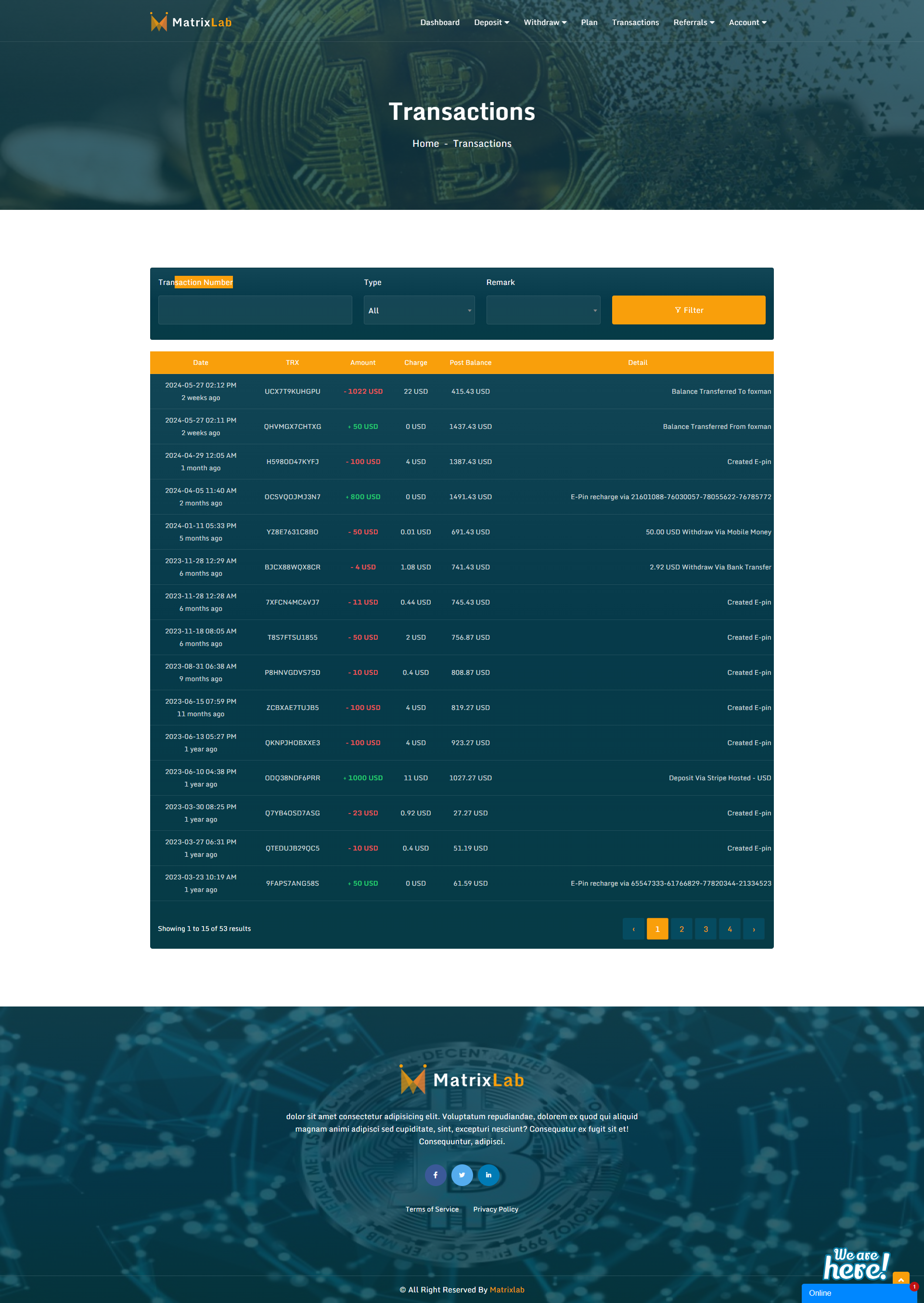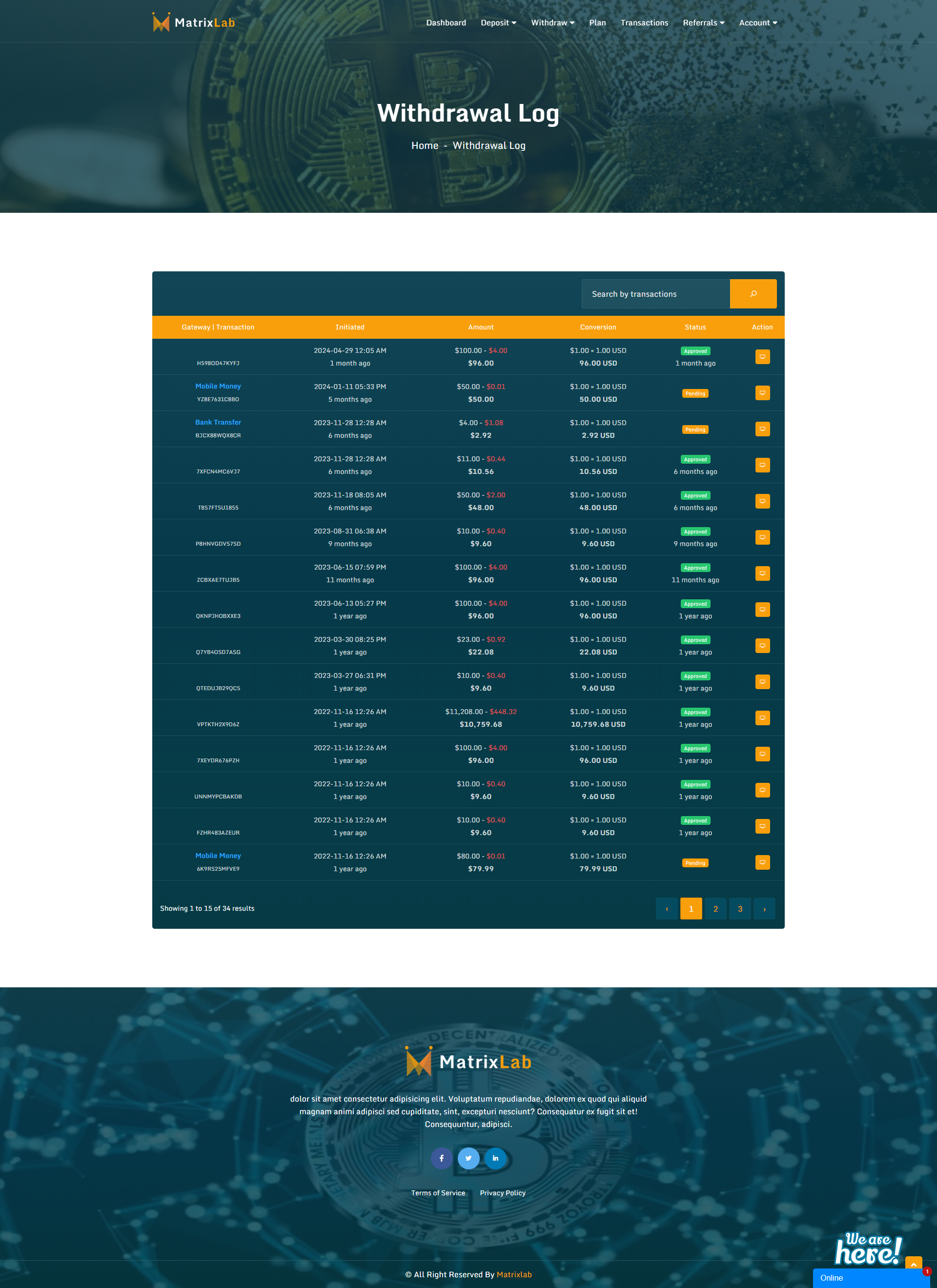 - Withdraw History.