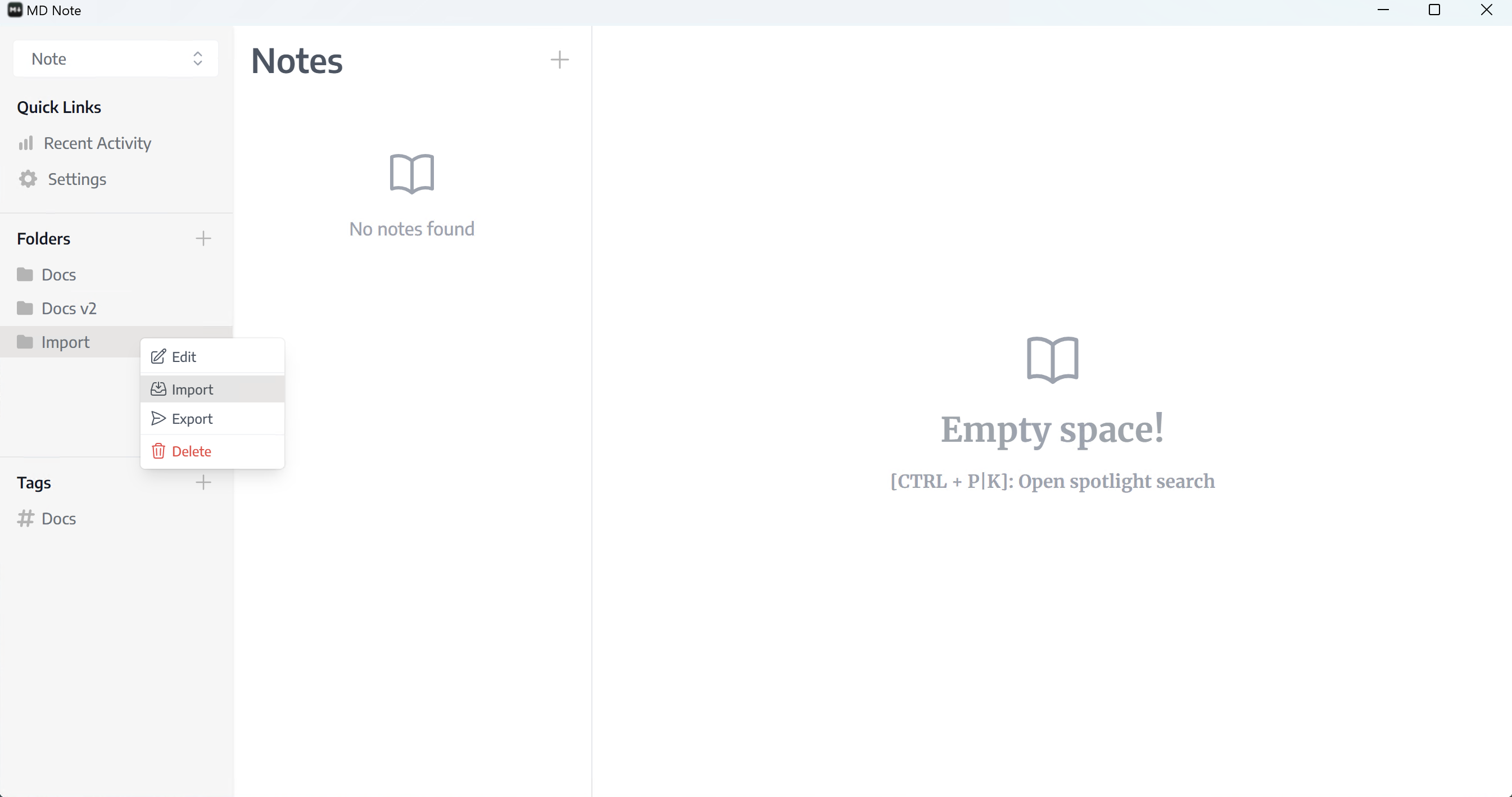 - Import: If you have already notes written on markdown files then you can import them very easily.