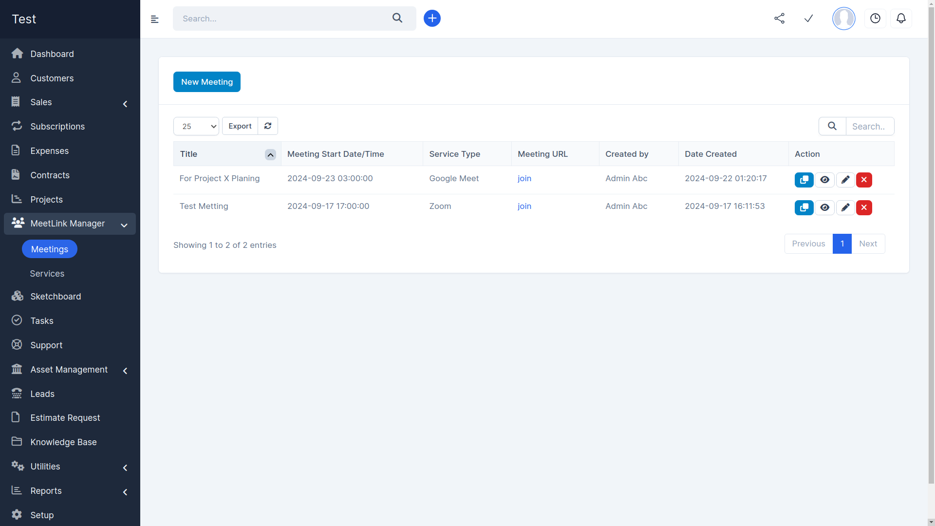 Meeting List Page: Provides a clear, organized view of all scheduled meetings for easy tracking and management.