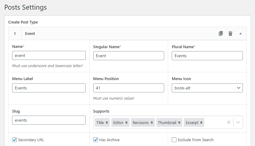 - Supports any Post Types