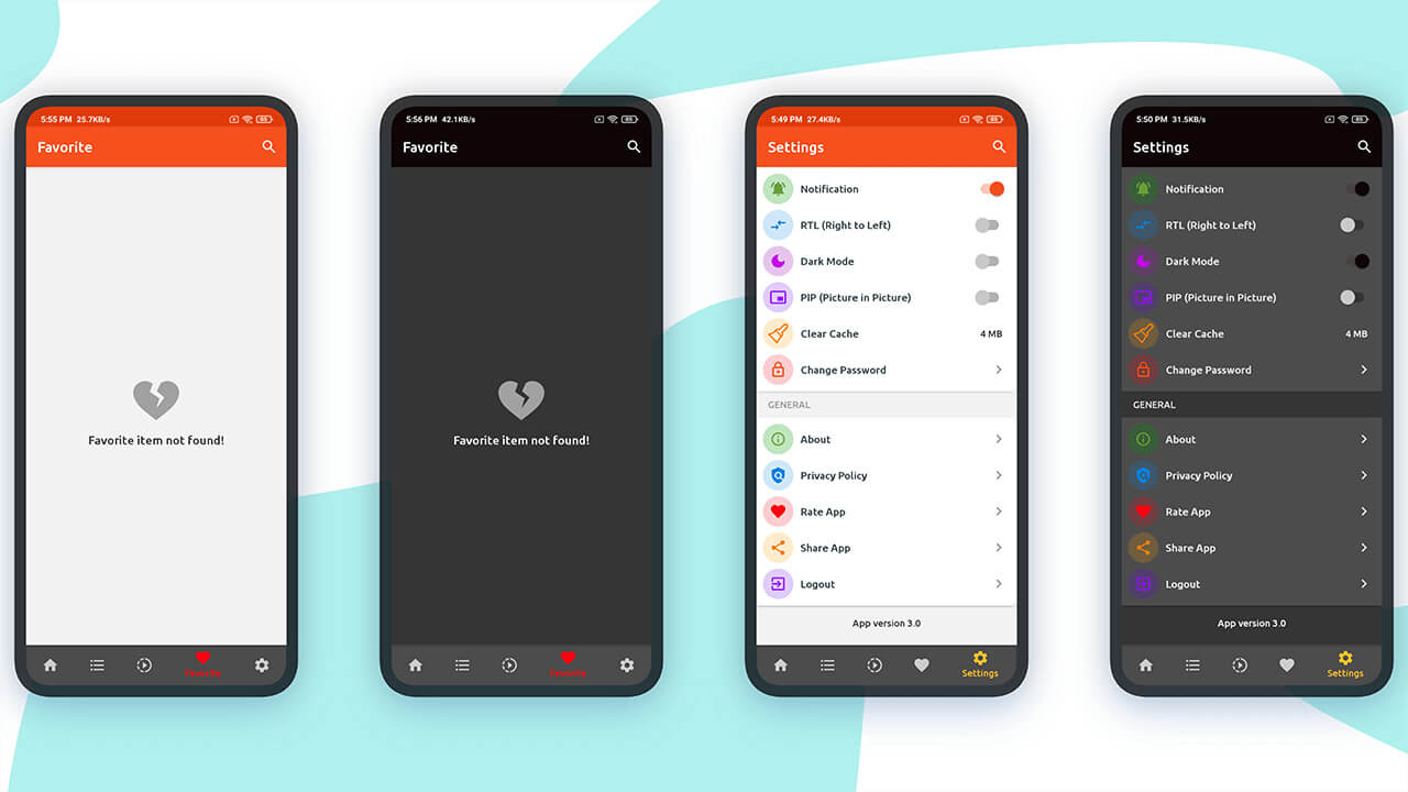 - [Added] Admin Panel : Auto Update(Force Update) setting added - [Added] Android: Auto-update popup shows if the current play store version is higher than the installed app version - [Added] Android: RTL Support (On/Off) - [Bugs] Android: Solved minor bugs for Favorite tab not shown youtube image, pagination issue solved