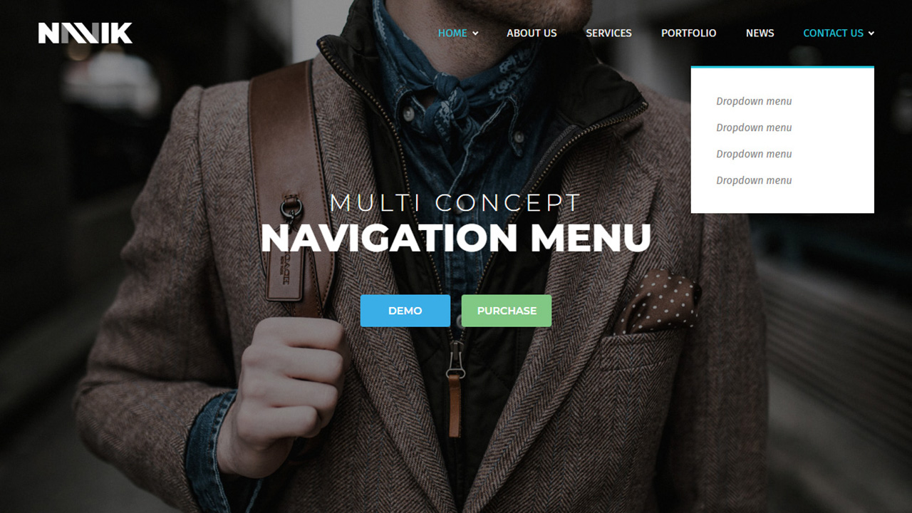 Navik responsive navigation menu comes with various styles of menu including standard menu, center logo menu, sidebar slide menu and fullscreen overlay navigation menu, also created with clean and simple CSS, javascript and including SCSS which you can easily adapt the navigation menu to suit your needs.