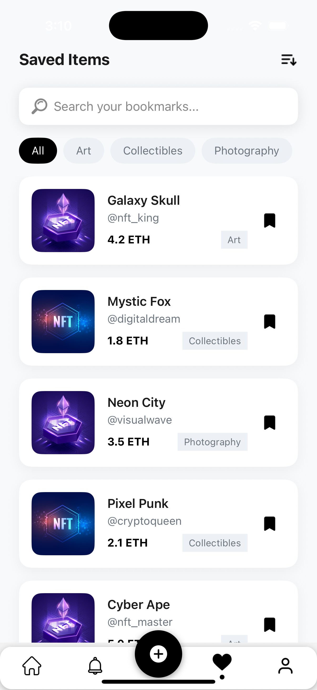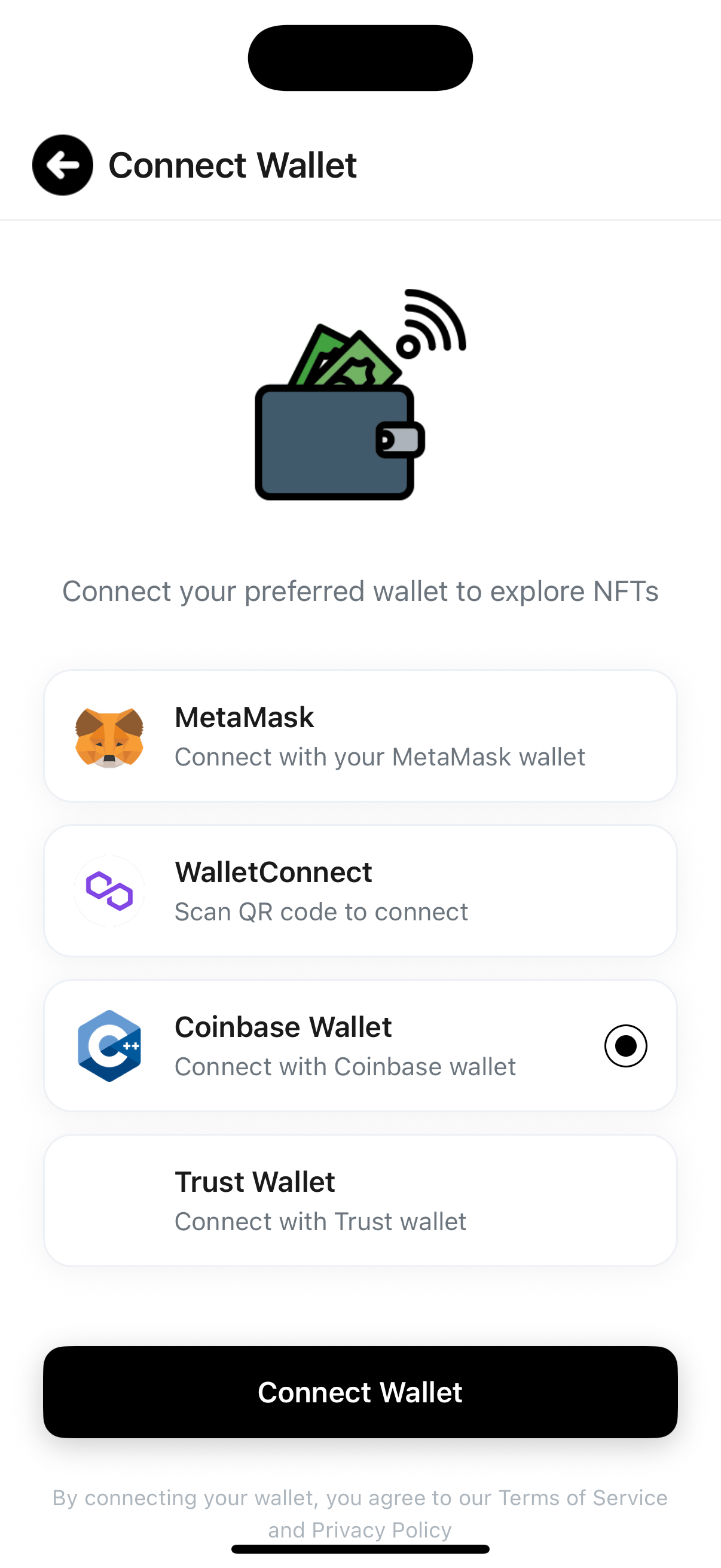 - Home Screen Featuring top collections, trending NFTs, and curated drops