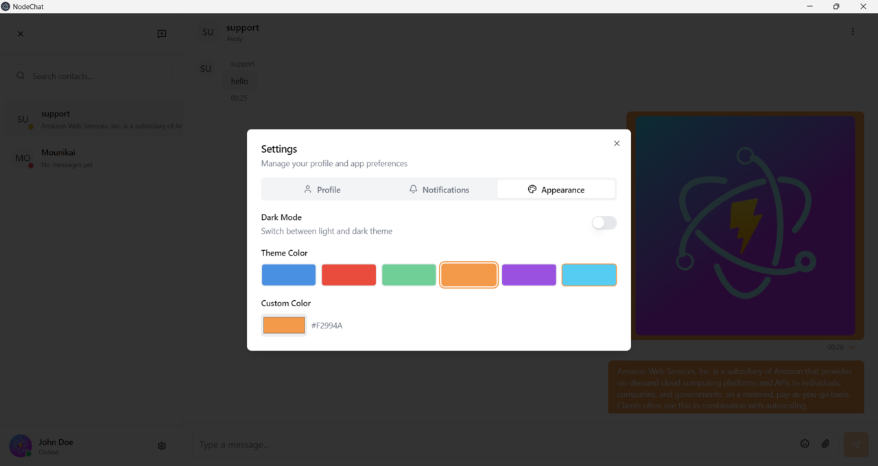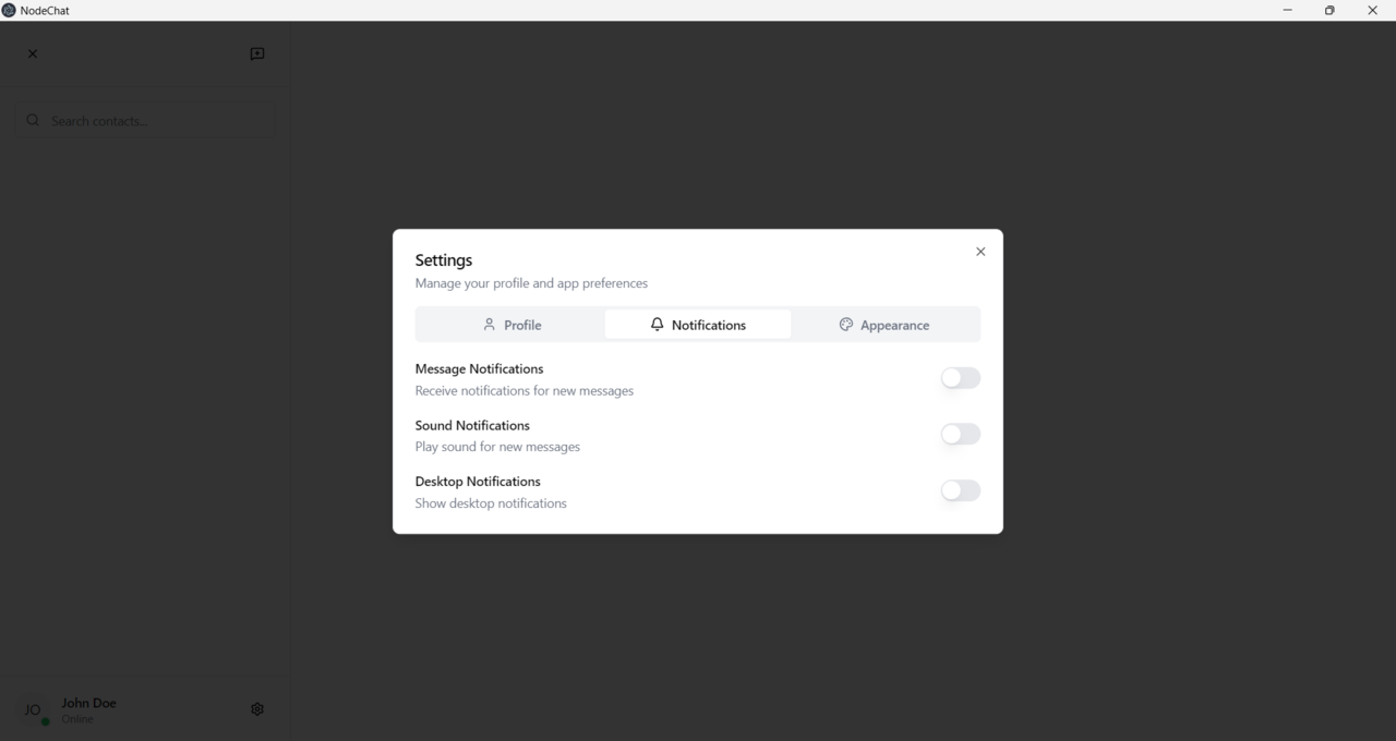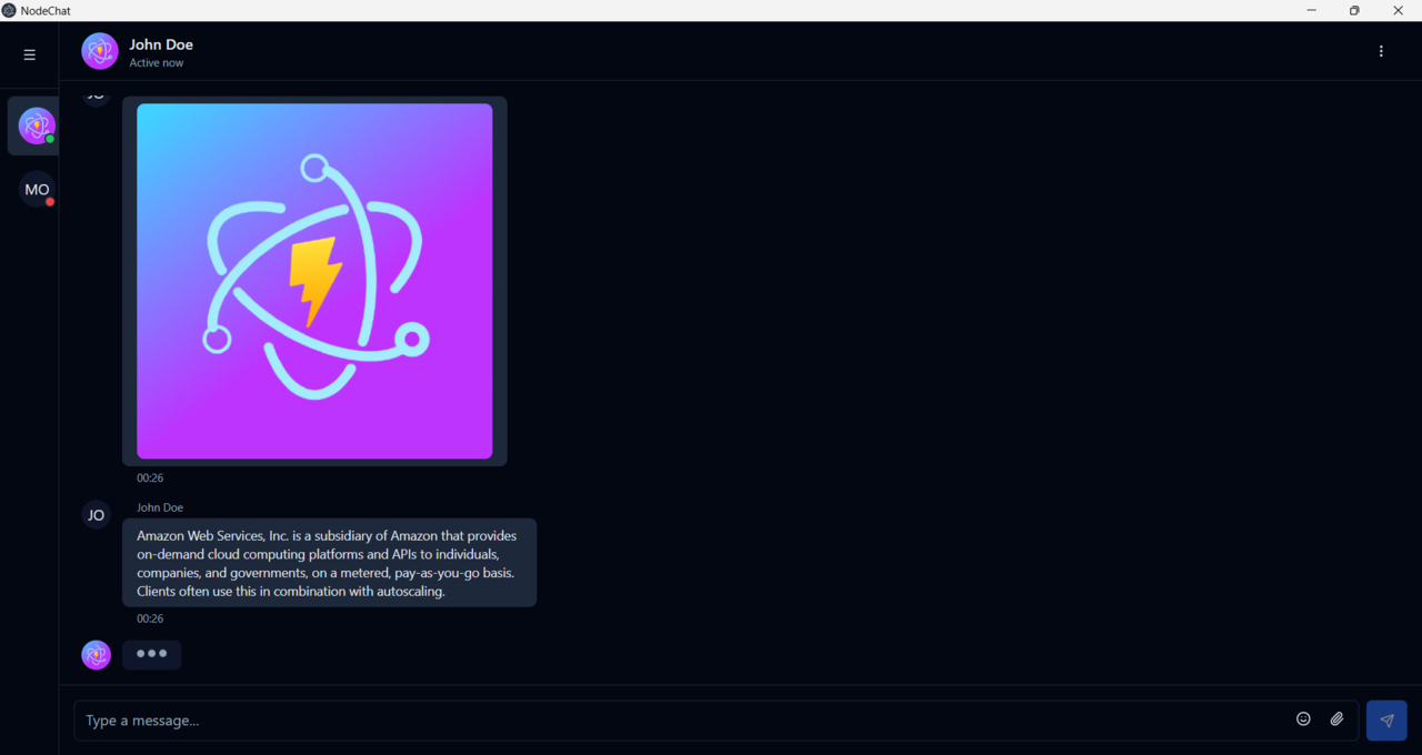 NodeChat – Secure Offline Realtime Messenger | Electron.js + React.js + Node.js