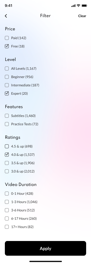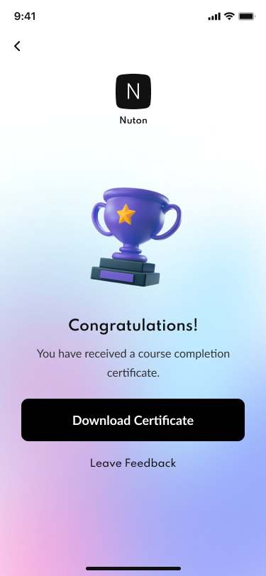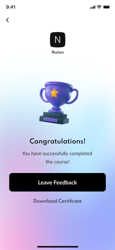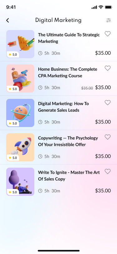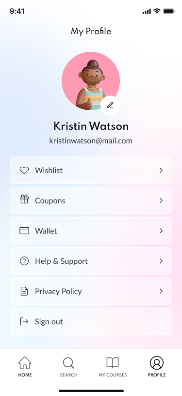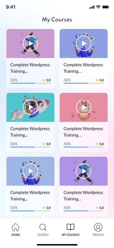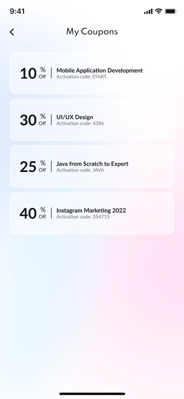 01 Onboarding 1.png 02 Onboarding 2.png 03 Onboarding 3.png 04 Sign in.png 05 Forgot password.png 06 Forgot password (sent email).png 07 New password.png 08 Sign up.png 09 Sign up (account created).png 10 Verify your phone number.png 11 Confirmation code.png 12 Home.png 13 Category Grid.png 14 Search.png 15 Category List.png 16 Filter.png 17 Course Details.png 18 Lessons.png 19 Reviews.png 20 Leave a Review.png 21 Instructor.png 22 Course Completed.png 23 Download Certificate.png 24 My Profile.png 25 Profile Edit.png 26 My Courses.png 27 My Wishlist.png 28 My Coupons.png 29 Courses.png 30 Checkout.png 31 Shipping & Payment info.png 32 Payment Success.png 33 Payment Failed.png 34 Help & Support.png 35 Privacy Policy.png 36 Log Out.png 37 Info Saved.png 38 Delete Account.png 39 Email Verified.png 40 Phone Verified.png