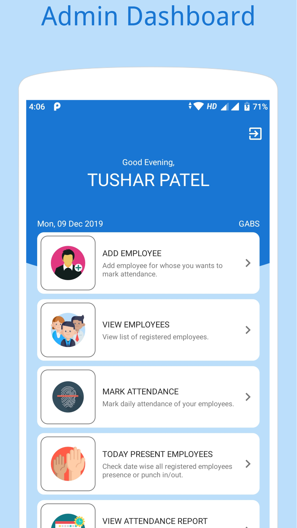 Note : Here admin person can only mark attendance of their registered employees. Employees are not allow to mark their own attendance. Employee can simply view their attendance reports.