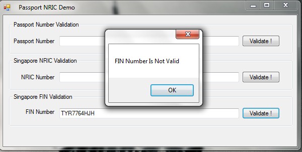 This application helps you to validate a NRIC (Singapore) or FIN (Singapore) and Passport number (International).