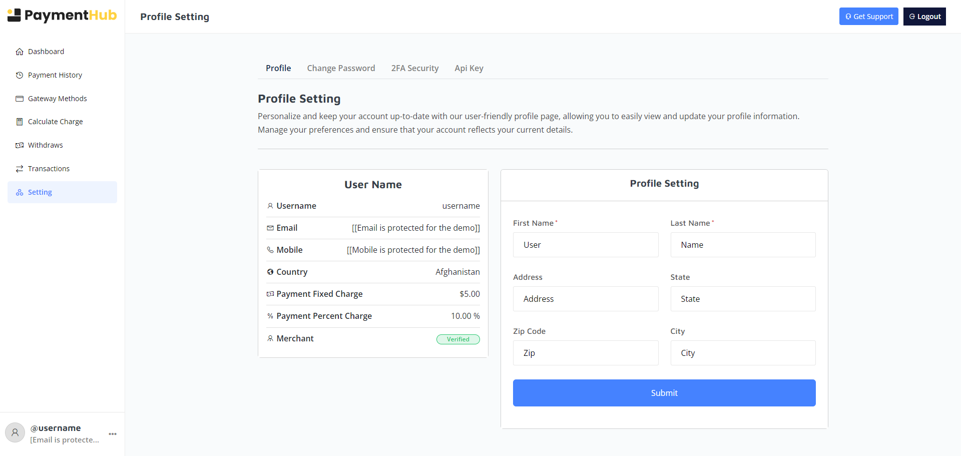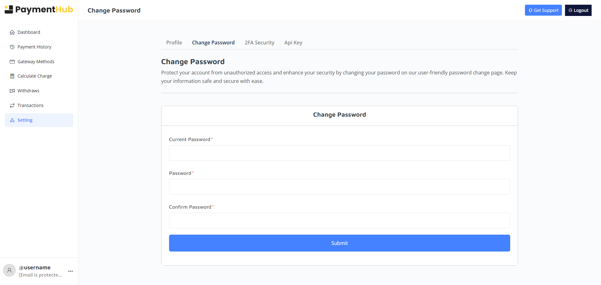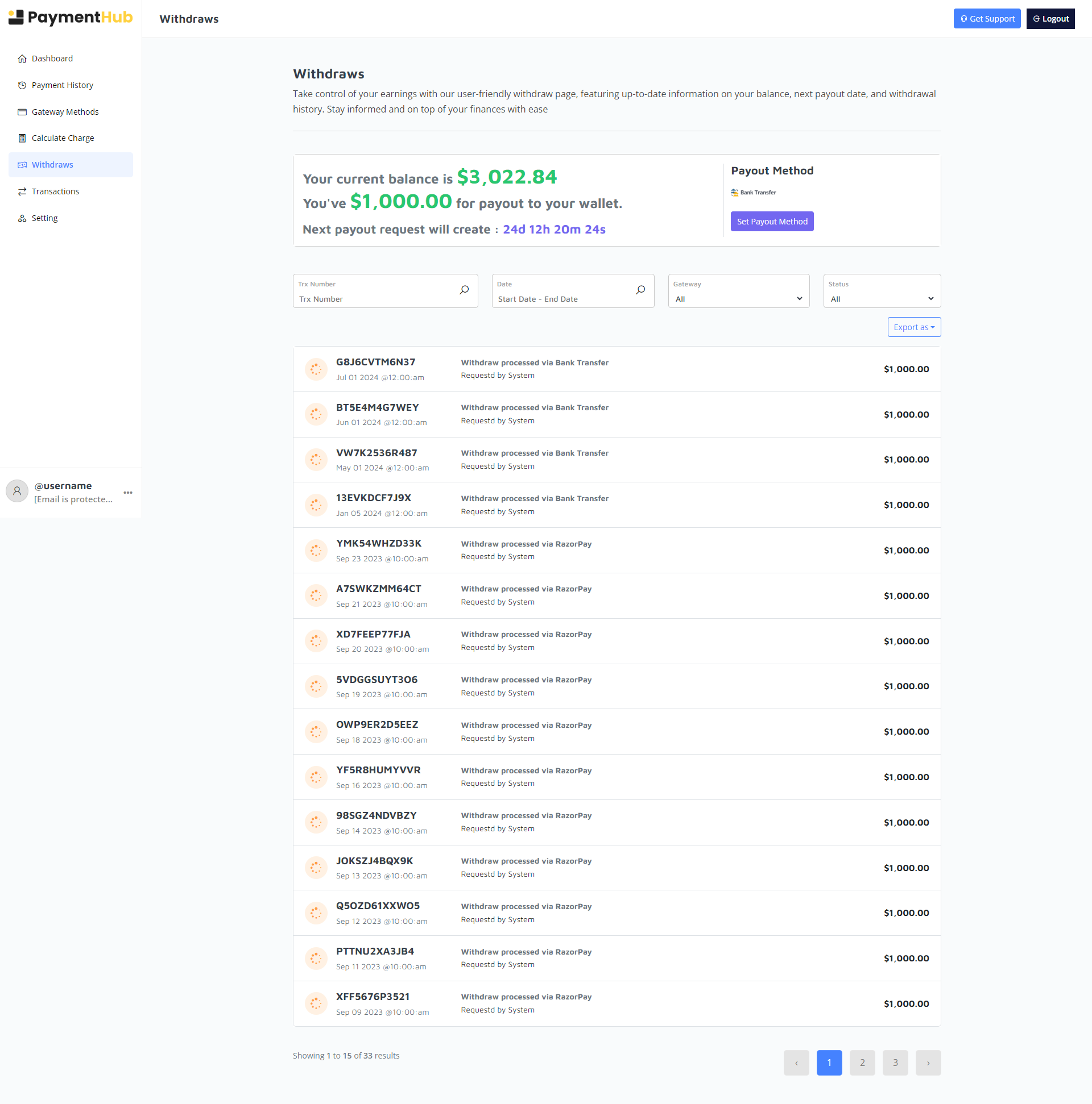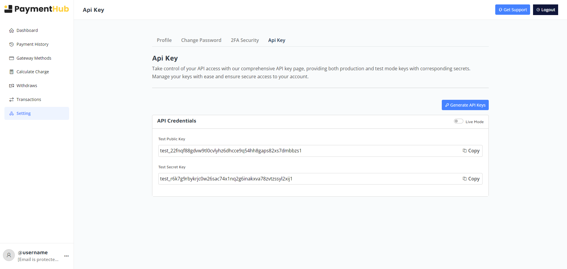 Merchants enjoy full control over their transactions, withdrawals, gateway methods, API keys, and security features – all from a sleek, intuitive interface.