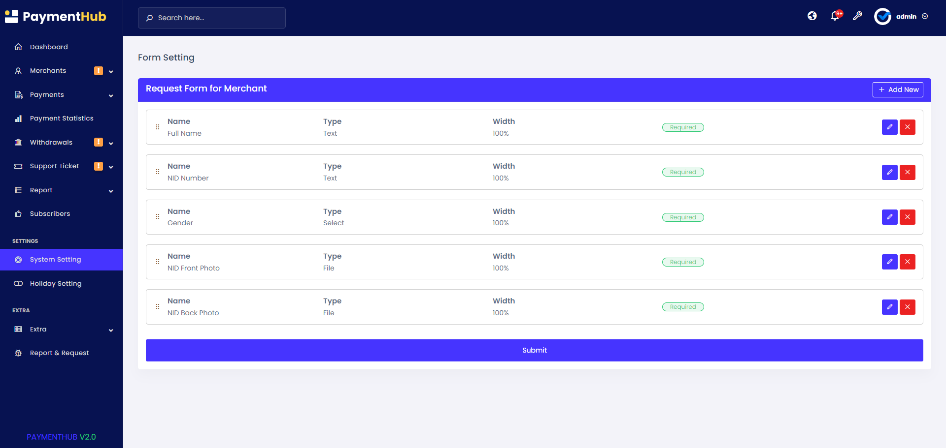 - Merchant Form Setting.