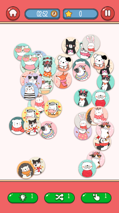 In Pet Match, the goal is to identify and match pairs of adorable pets. Players must search the board to find two identical pets. When a matching pair is selected, they will be removed, creating space for new matches. The challenge increases as players race against the clock to match all the pets before time runs out. Enjoy this fun and engaging matching game!