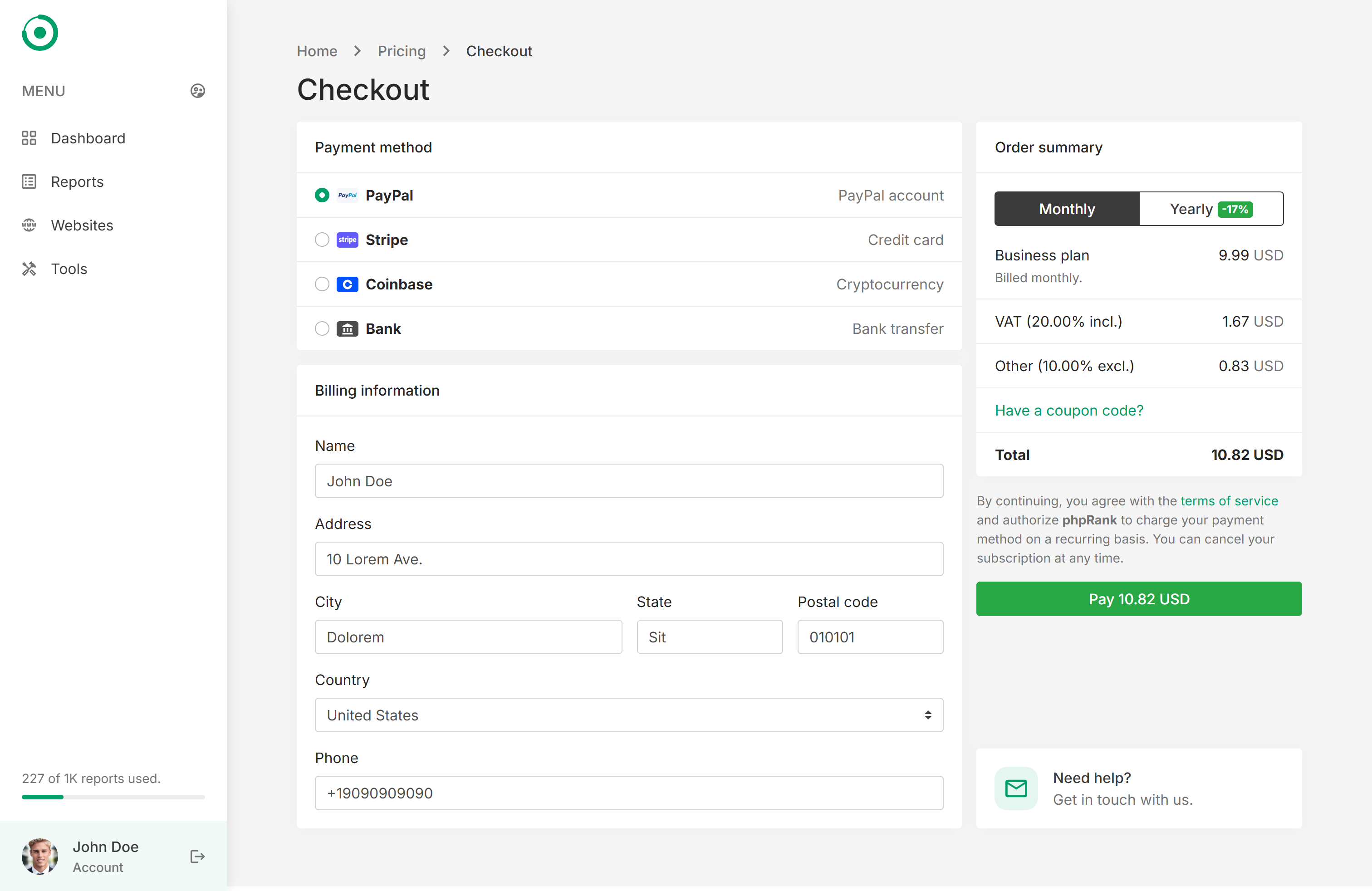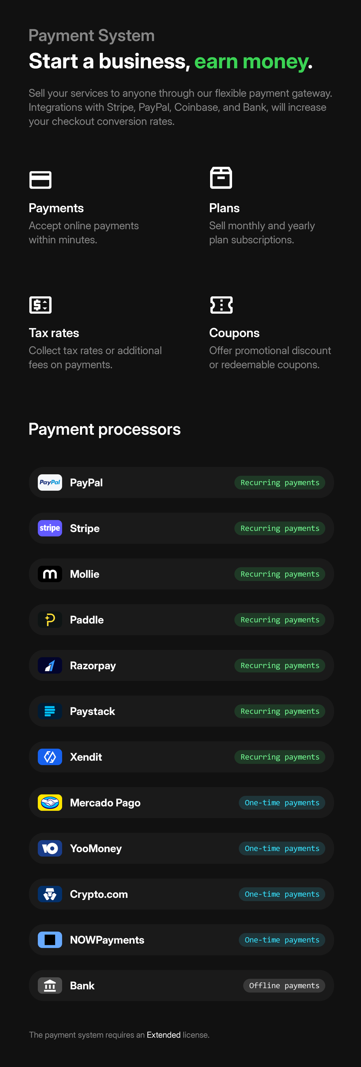 CHECKOUT – Checkout through PayPal, Stripe, Mollie, Paddle, Razorpay, Paystack, Crypto.com, NOWPayments, and Bank transfer.