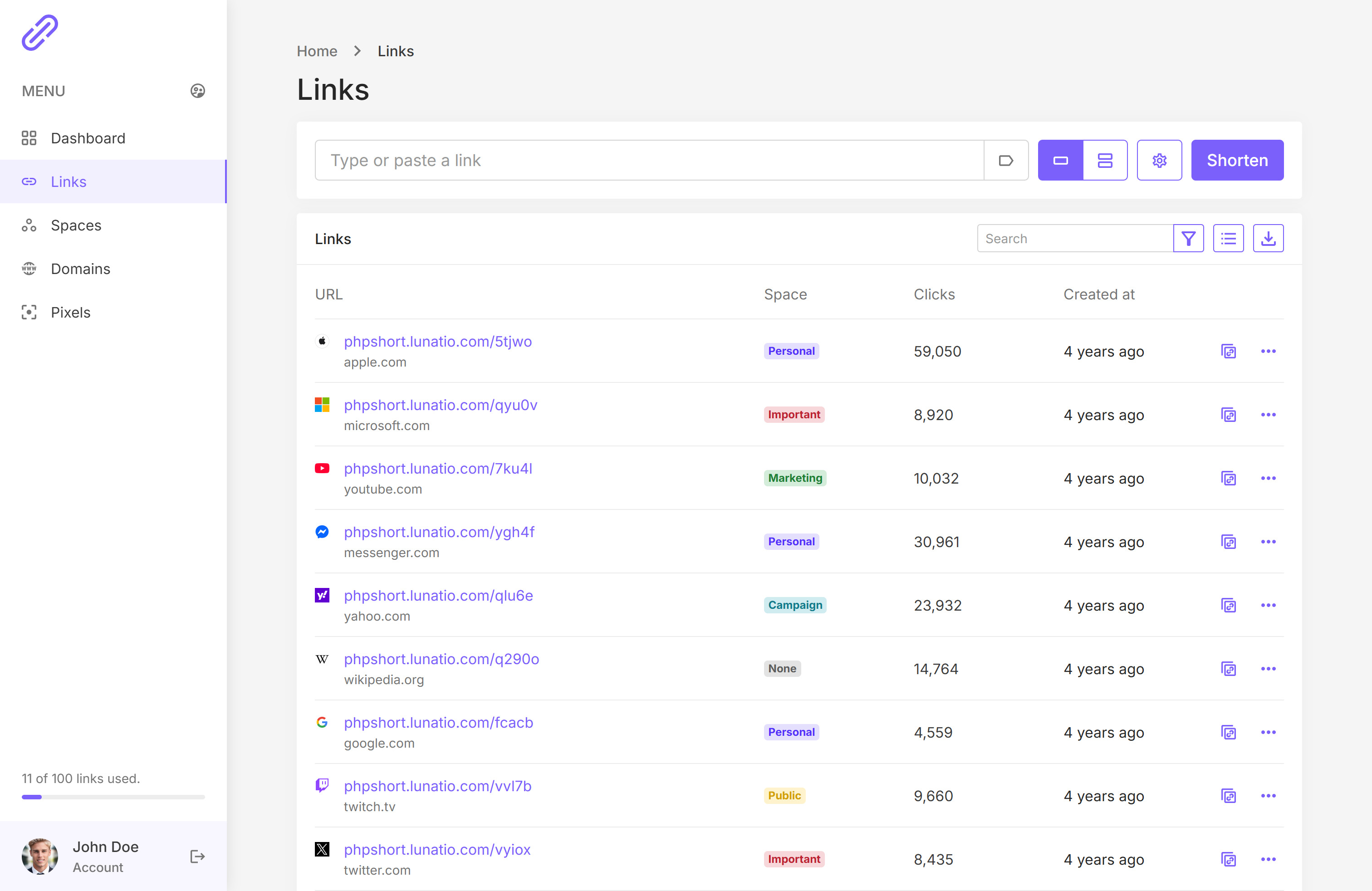 phpShort is a powerful URL shortener software to create, target, and track fully branded links using custom domains, retargeting pixels, and advanced analytics.