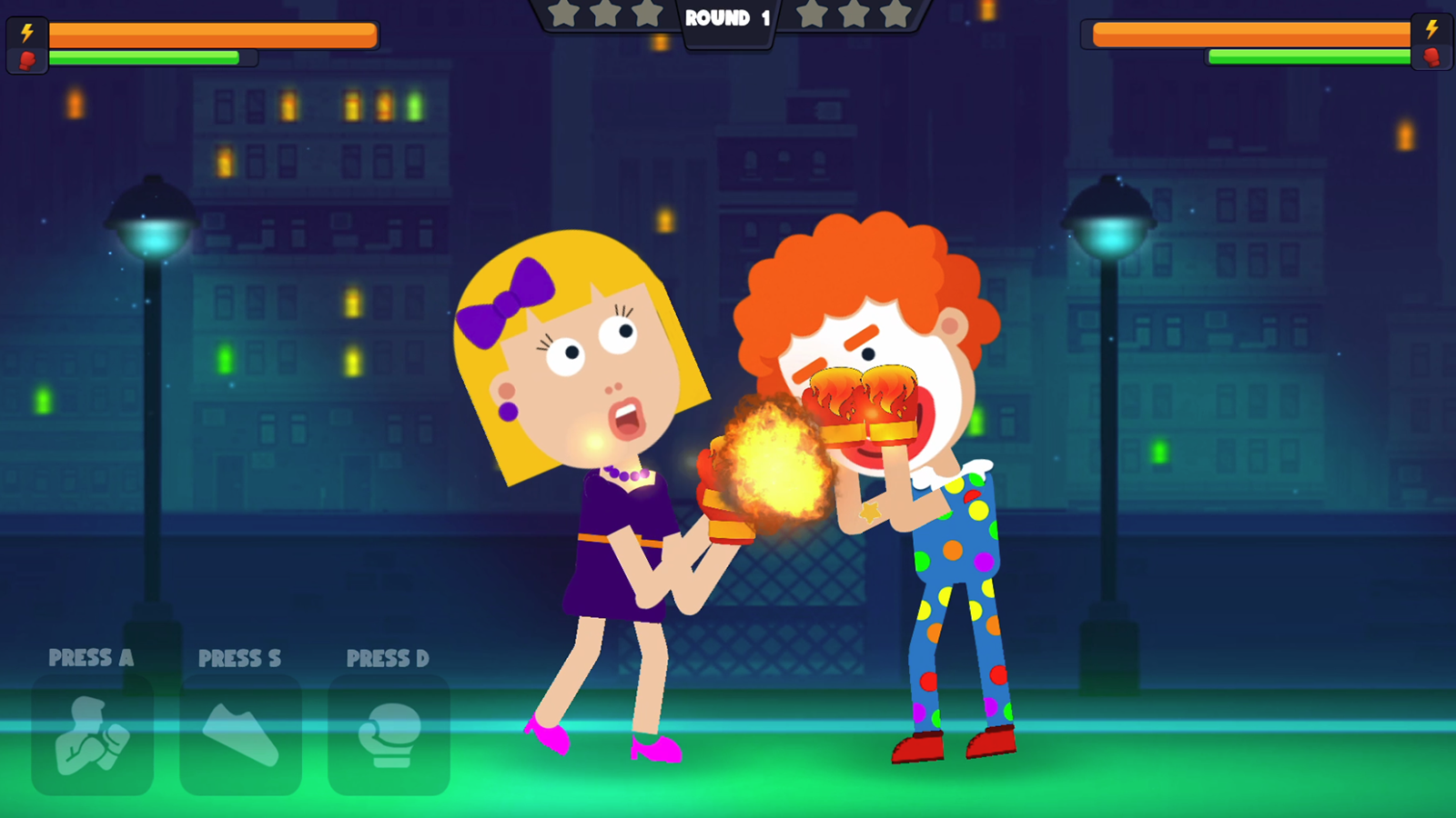 Turn up the madness with the Funny Mod options: Big Head, Stretch Punch, Stretch Kick, Super Punch, and Big Punch! Each one transforms the fight into unpredictable fun and unstoppable laughter. Can’t decide? Let Random Mode choose for you!
