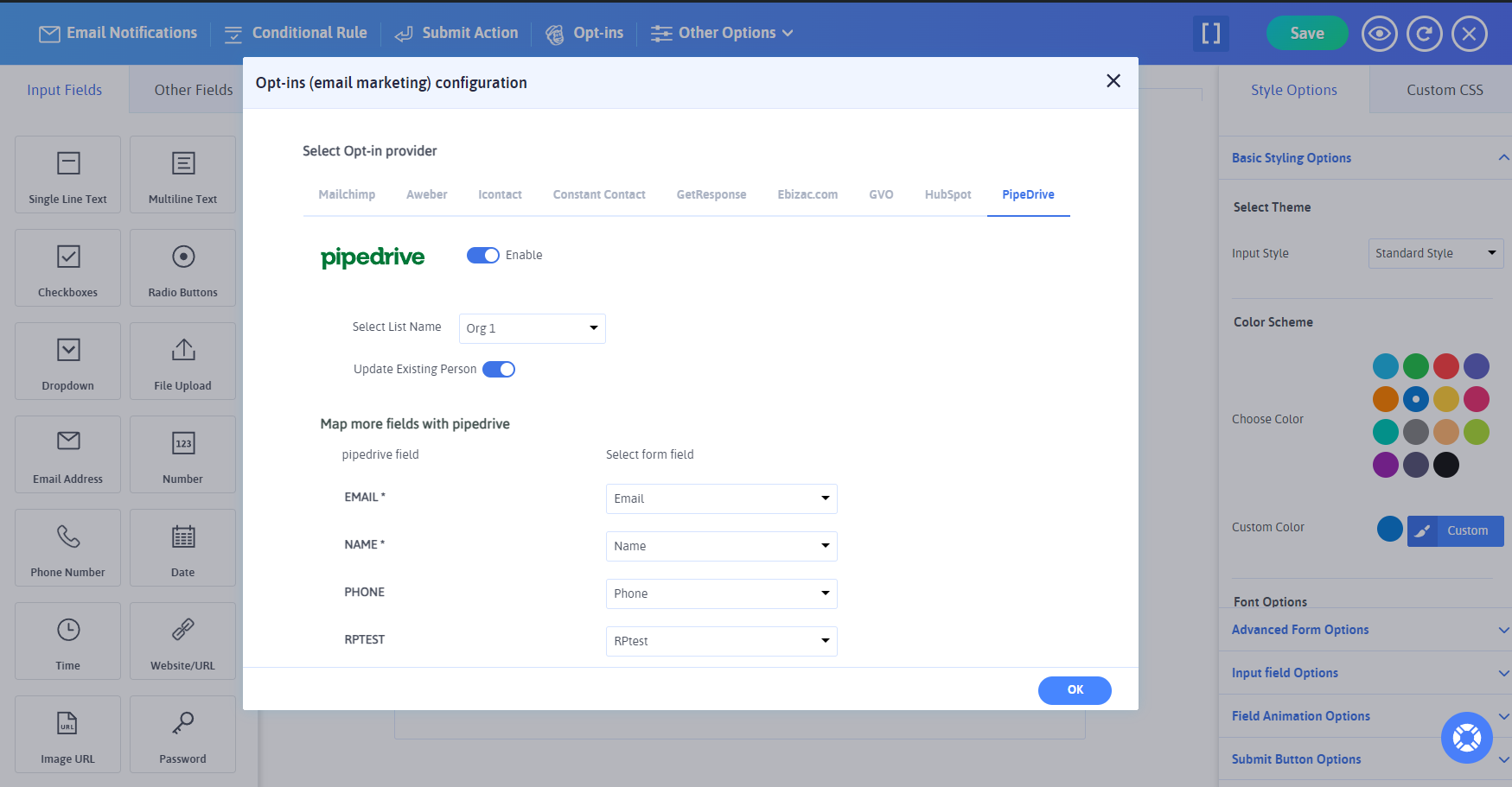 ARForms – Pipedrive Integration addon allows you to connect your form entries to Pipedrive in a single automated process. With this addon, the contact data is automatically synced to your Pipedrive contact list immediately after the form submission of ARForms.