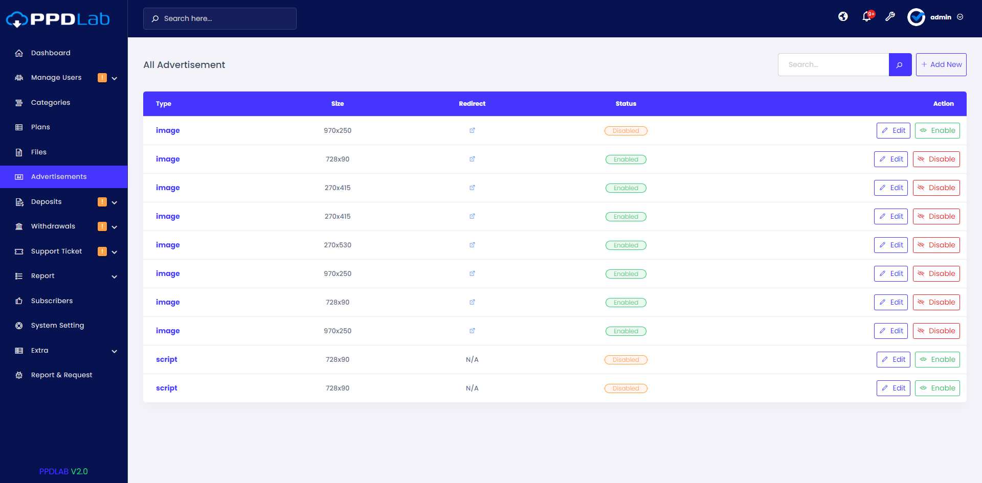 - Advertisements Management.