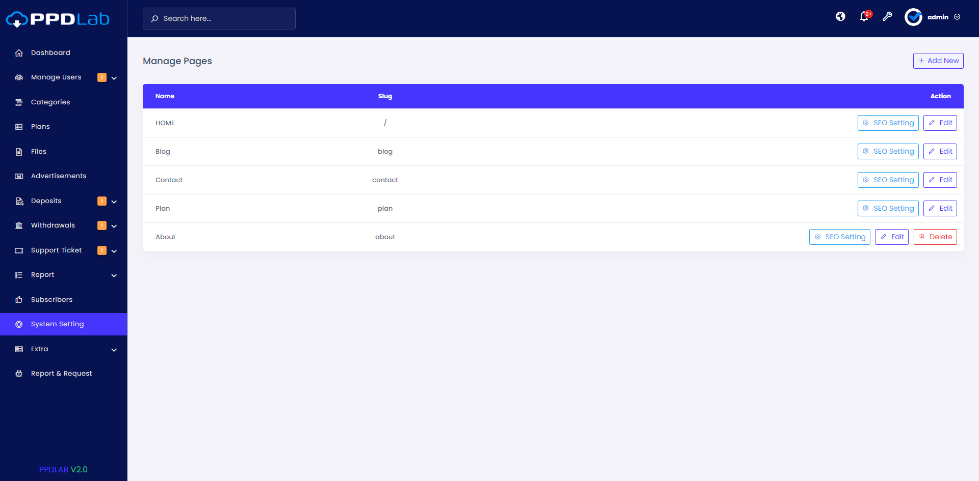 - Policy Pages Management.