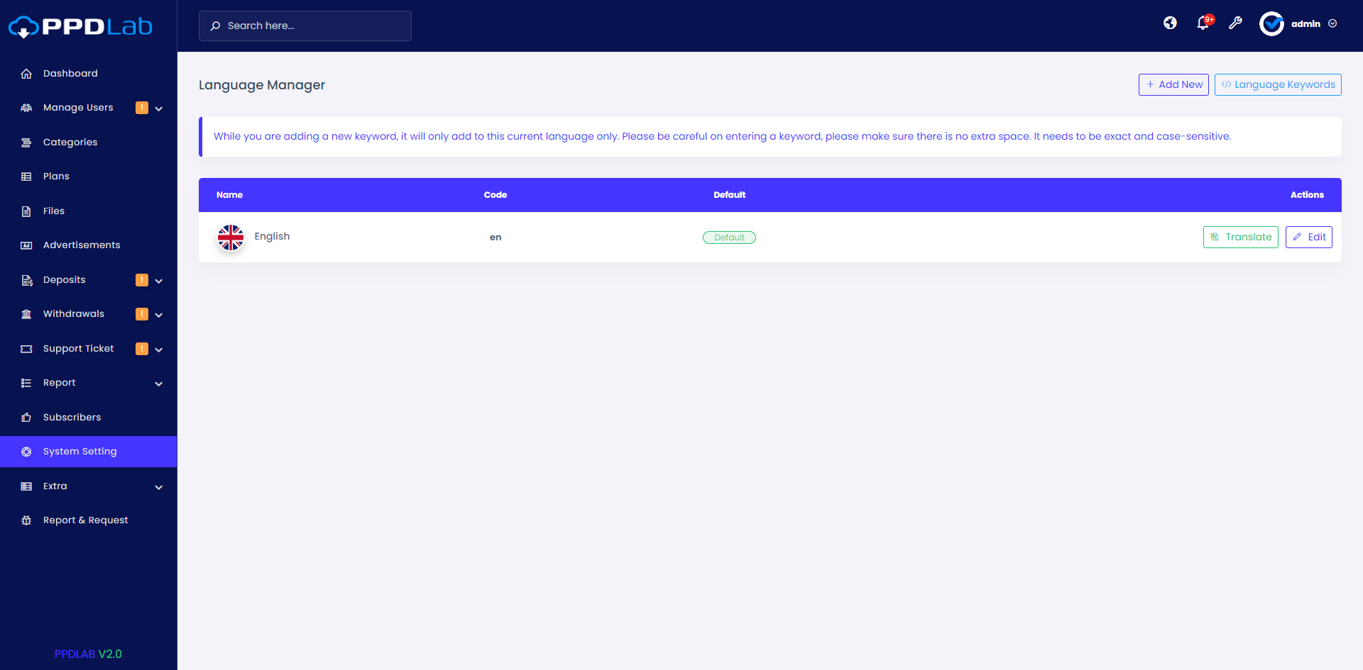 - Language Management.