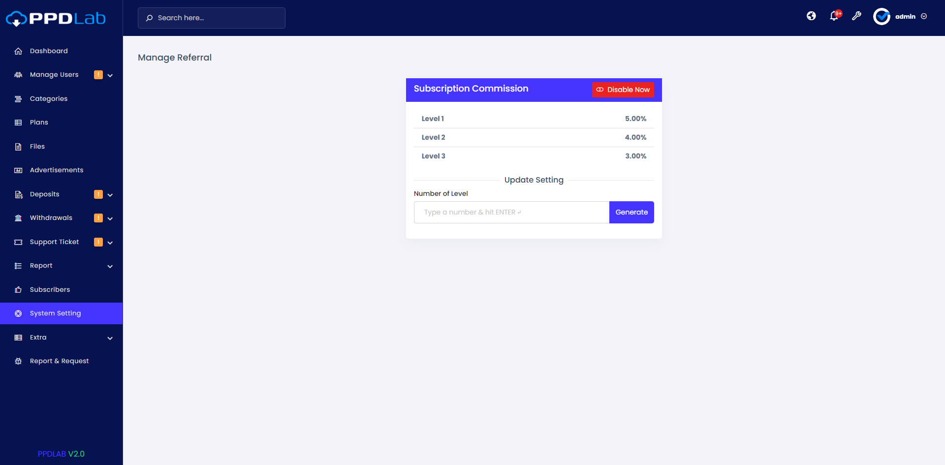 - Referal System management.
