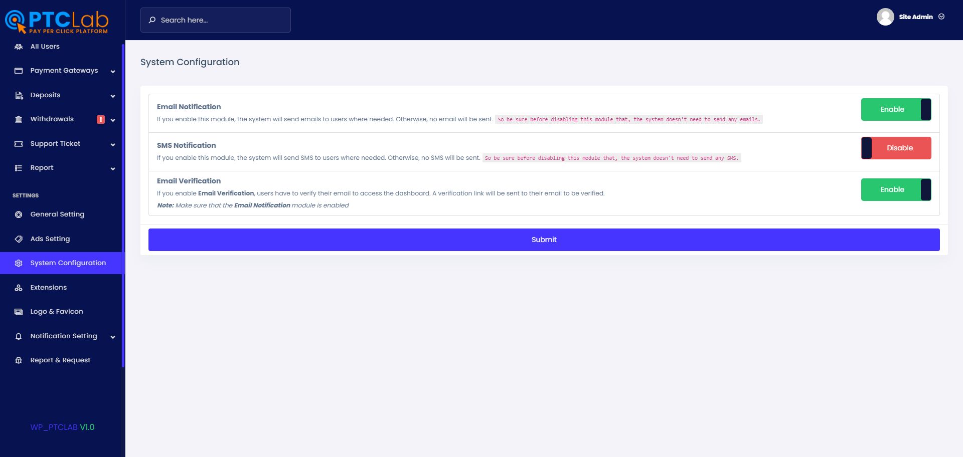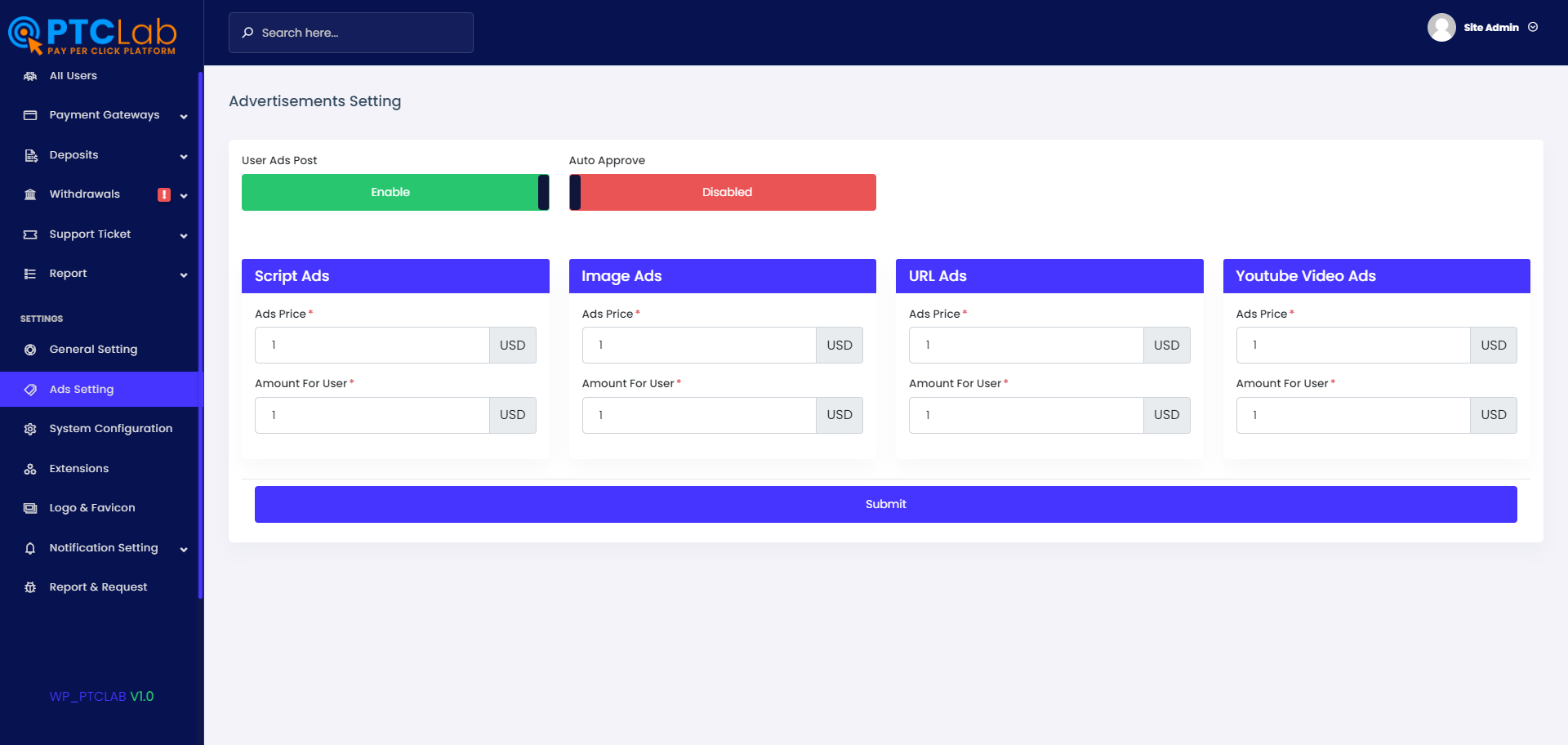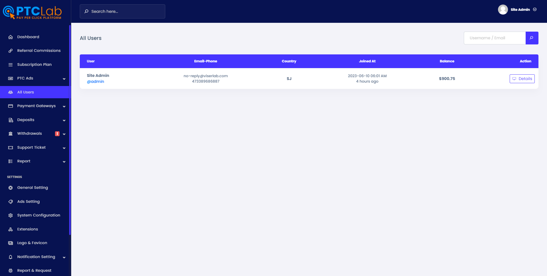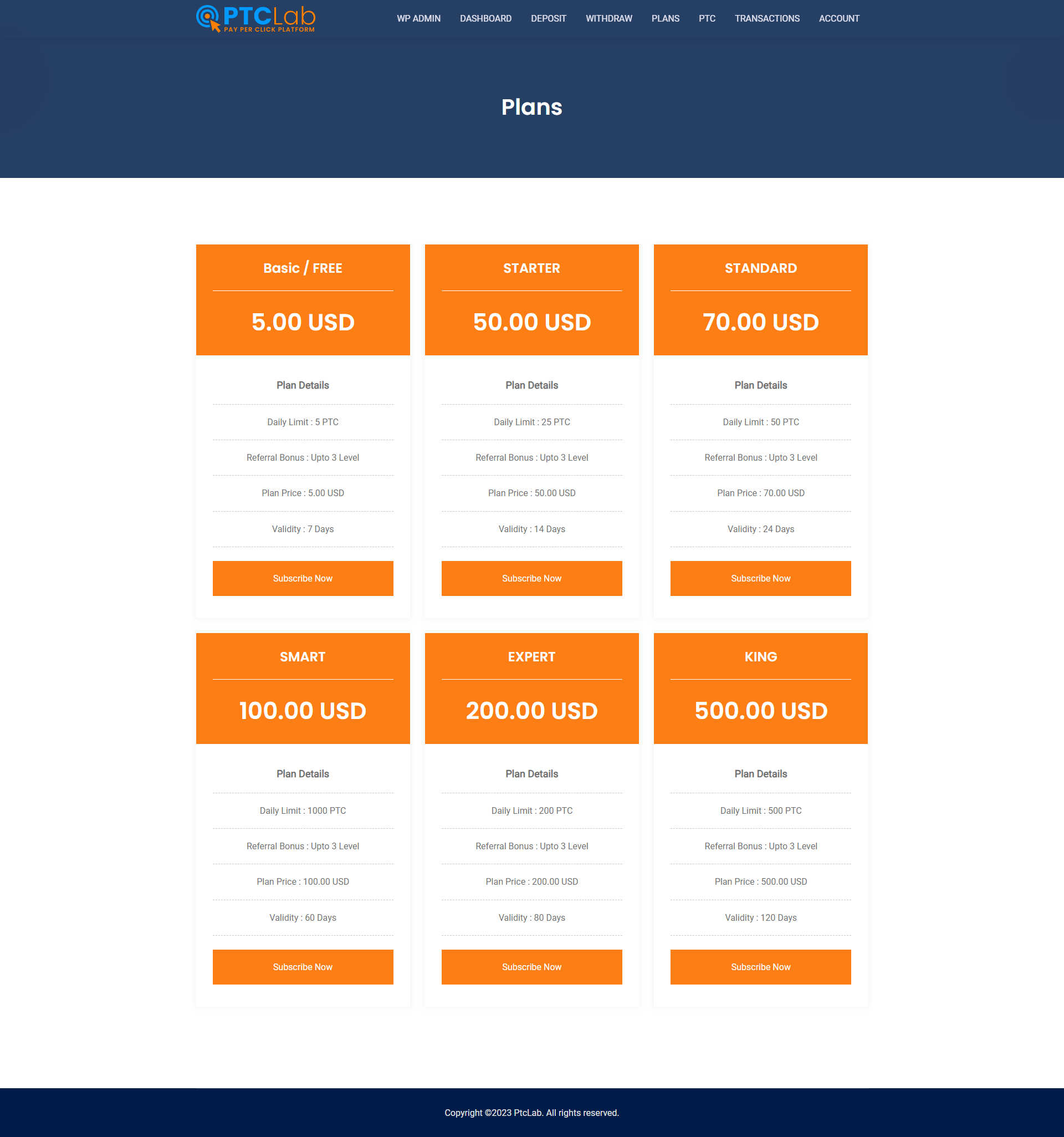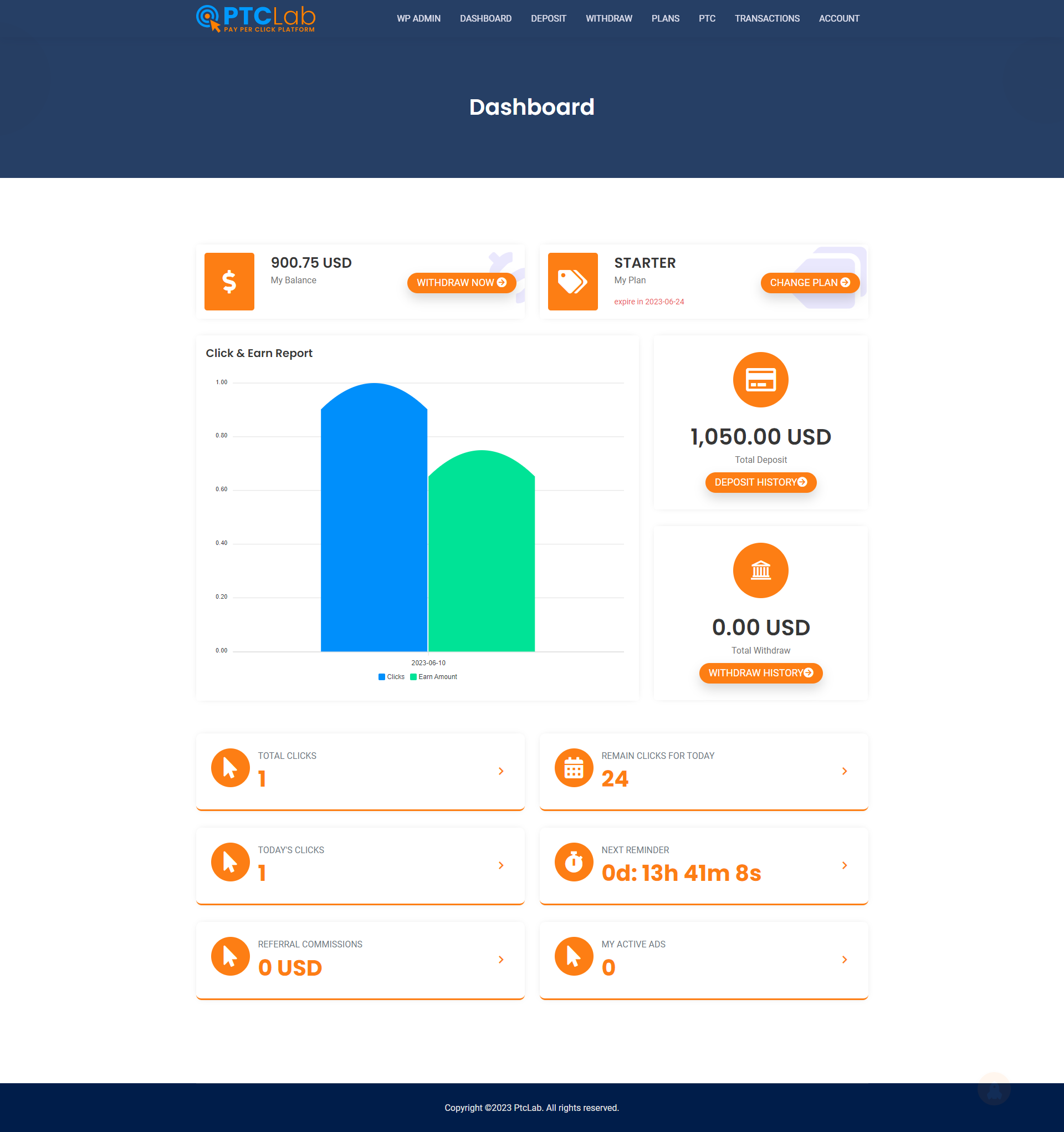 ptcLAB is a WordPress Based Plugin for Pay Per Click businesses. You can run your own PTC, PPC, or PPV website within minutes without any programming knowledge. Admin is able to set unlimited links from the admin panel, and when users click or view those they will get paid. It’s an online Earning Platform for both the Site owners and users. our system is fully dynamic, Easy to use, User Friendly, and 100% responsive.