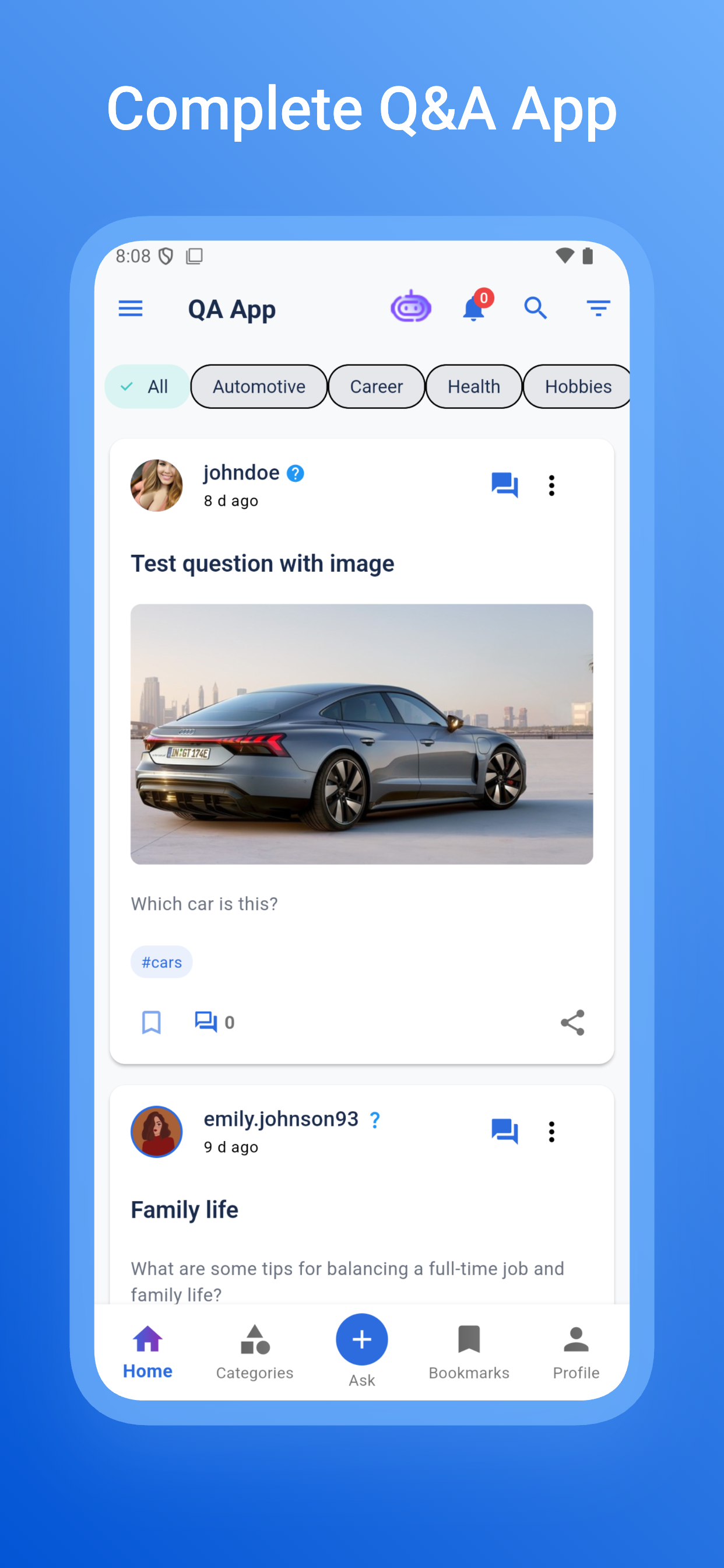 Question & Answer platform designed for mobile devices, combining traditional Q&A functionality with modern features like AI assistance and real-time interactions. Built with Flutter, it offers a seamless cross-platform experience with a focus on user engagement and community building.