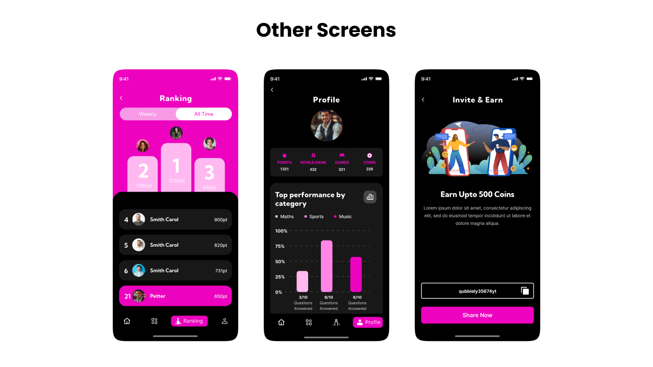 - Leaderboard: Engage users with a real-time leaderboard that tracks top scorers and achievements.