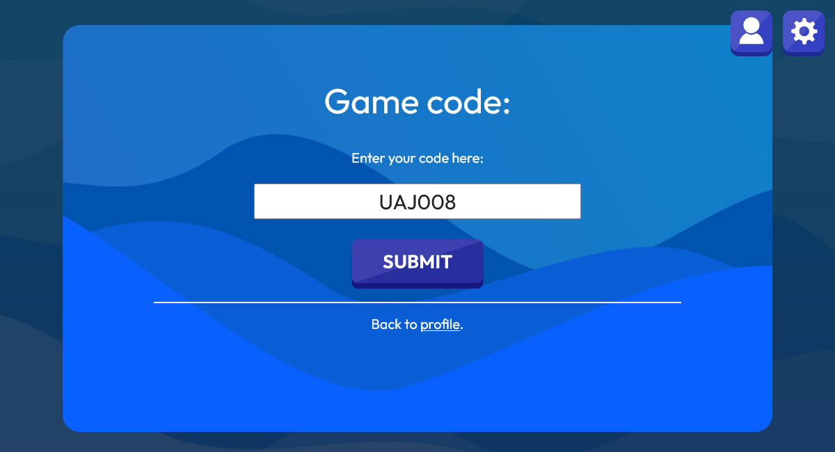 - Enter game code to start private quiz