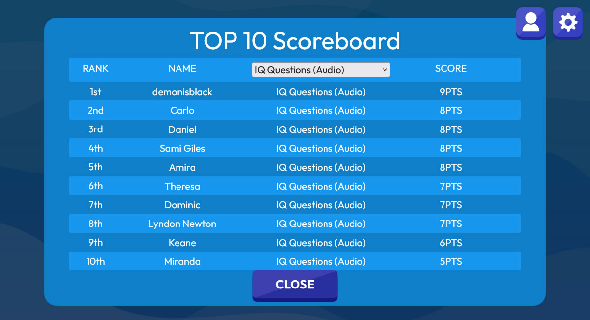 - Register as member to play all the trivia game with single account