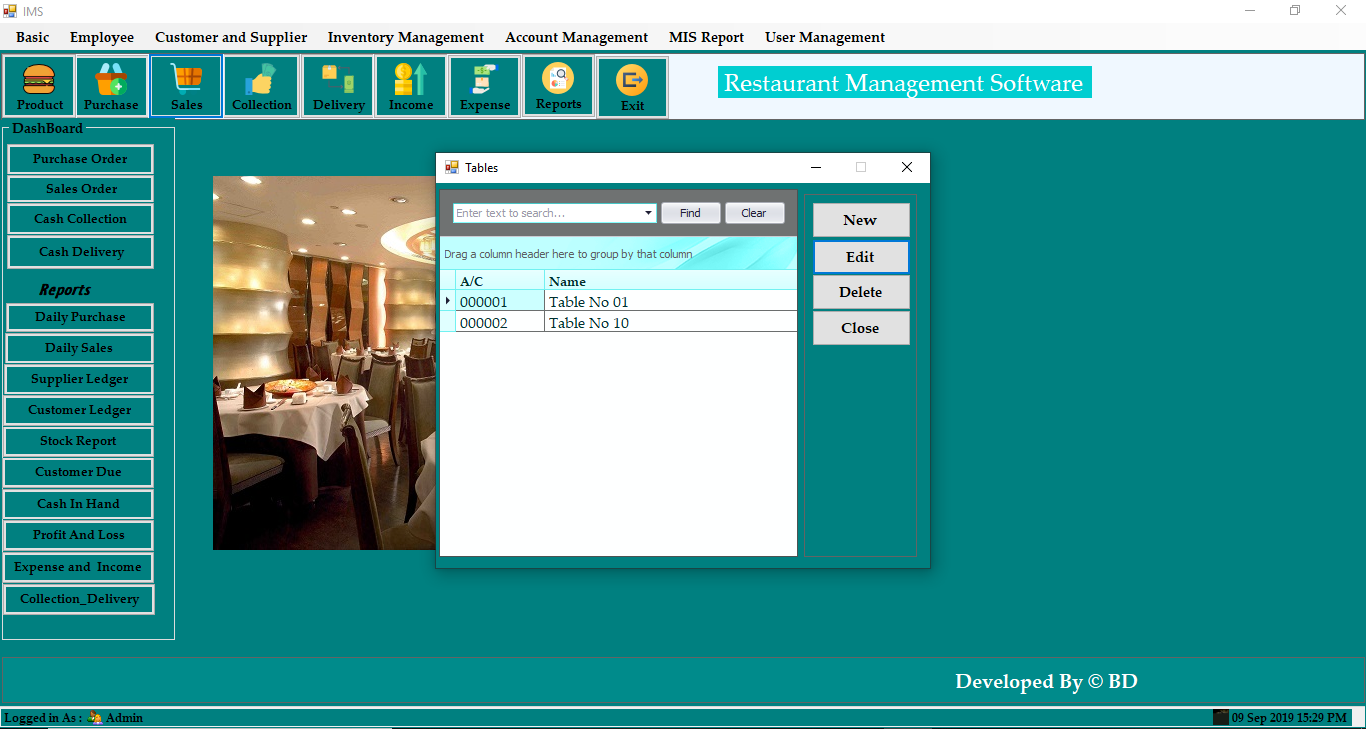 - Items: You can add unlimited food or item here with stock information, supplier name, inventory info, barcode number etc.