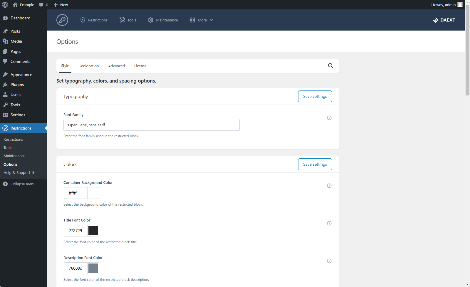 You can customize the colors and the typography of the elements displayed in the front-end with the 18 style options available in the back-end.