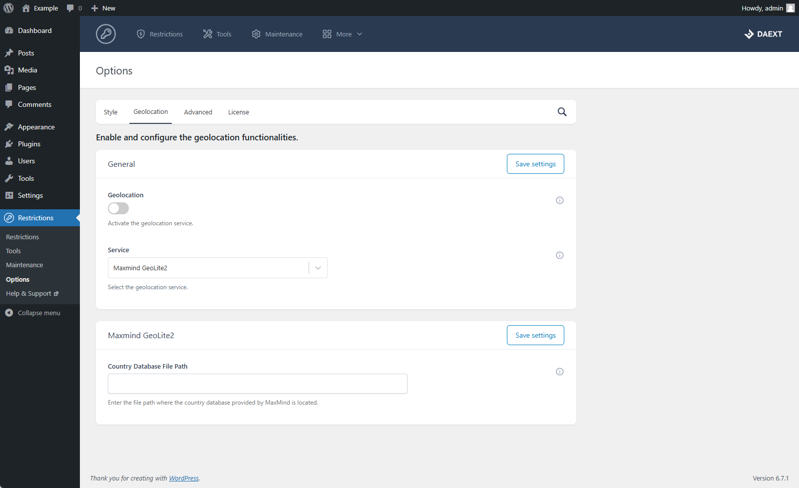 Note that to use the GeoLite2 database, you have to create a MaxMind account and accept their terms of service.